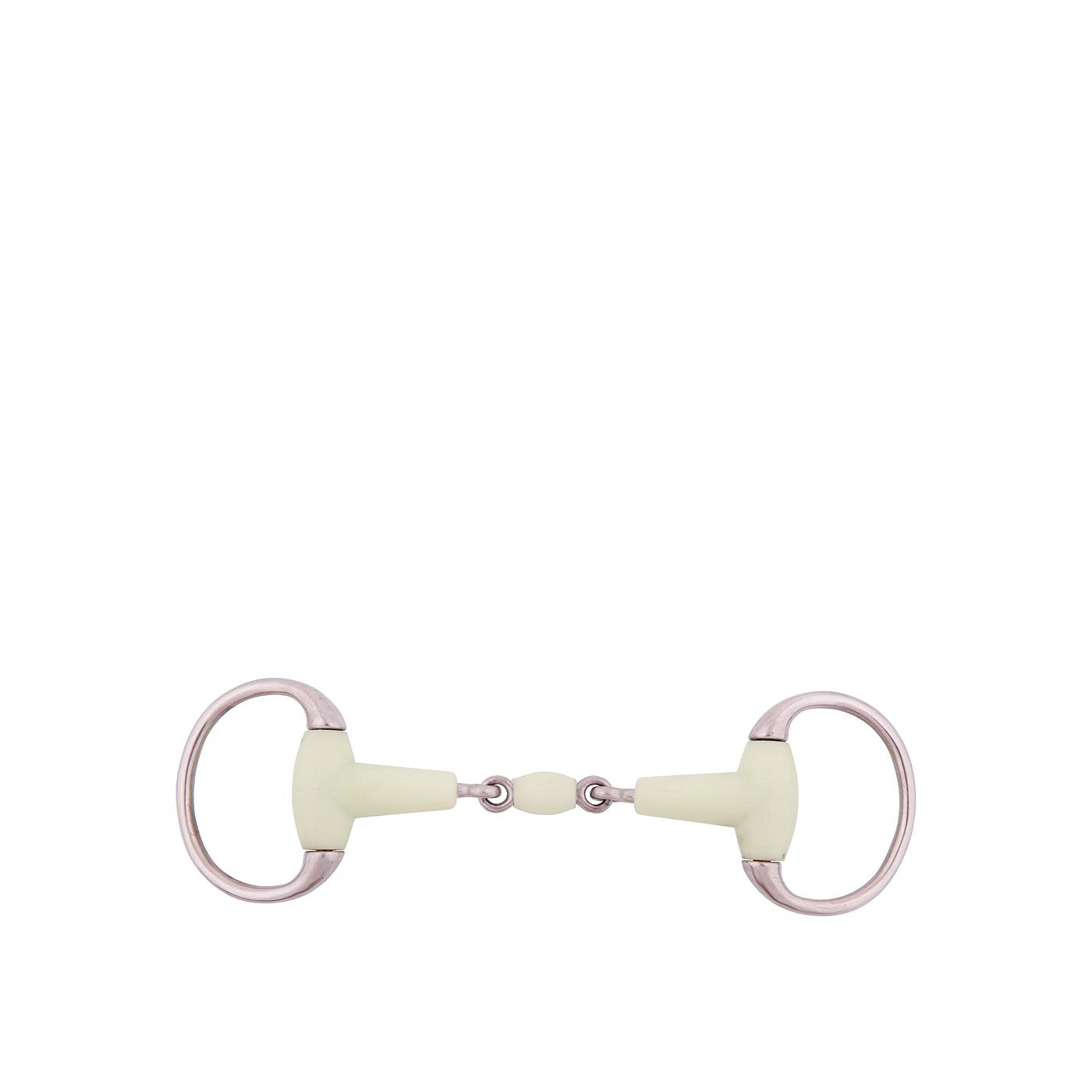 Mors releveur double brisure avec embouchure Apple Mouth et anneaux en acier inoxydable, anneaux de 65 mm. L'embouchure a une épaisseur de 18 mm.