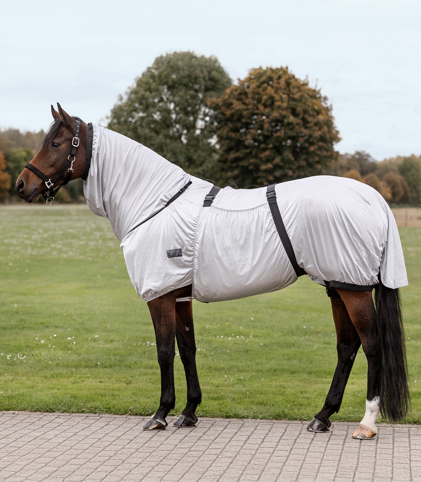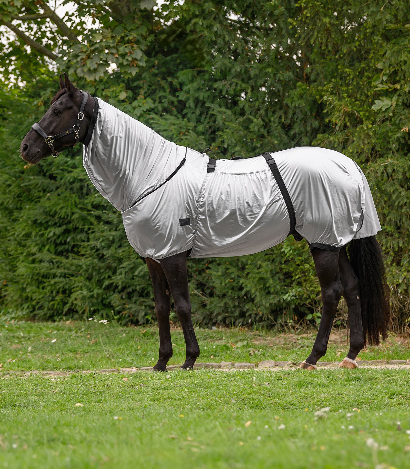 Protection complète pour chevaux souffrant d'eczéma estival, confectionnée dans un matériau fonctionnel respirant. Ce produit est doté d'une protection de cou intégrée et d'un large rabat ventral. Masque non inclus.