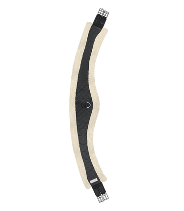 Langgurt, weich gefüttert mit synthetischem Teddyfell. Seine Form macht ihn besonders für Pferde mit rundem Bauch geeignet und verhindert ein Nach-vorne-Rutschen des Sattels. Mit D-Ring und Rollschnallen aus Edelstahl. Ohne Gummizug.