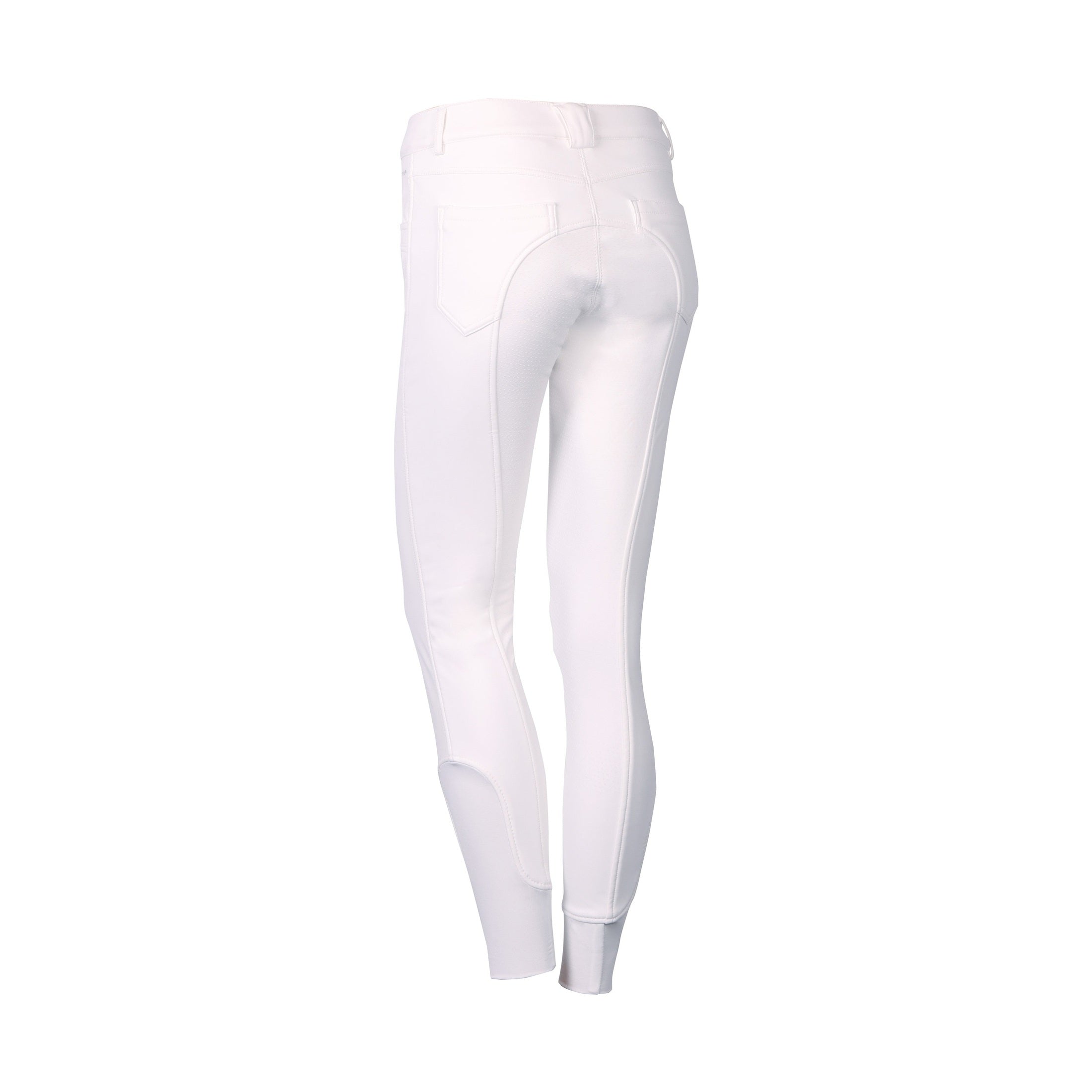 Wasserabweisende Reithose mit rundgenähtem Gesäß mit Silikonbesatz, zwei Gesäßtaschen und „Flexlegs“. Dezente Ziernähte und Gürtelschlaufen runden das Design ab. Feines 4-Wege-Stretch-Softshell-Material mit Fleece-Innenseite. Ideale Reithose für den Winter.