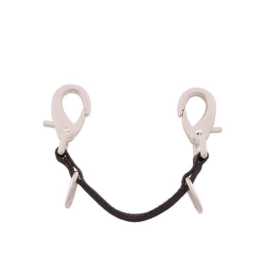 Perlon-Verbindungsstück zum Longieren mit einem D-Ring auf der linken und rechten Seite zur Befestigung der Longe. Das Longiergebiss kann mit zwei Clips am Gebiss oder am Halfter befestigt werden. Durch die Befestigung der Longe an zwei verschiedenen Punkten erhält man eine gleichmäßige Druckverteilung auf das Gebiss und kann dennoch das Gebiss nicht durch das Maul ziehen. Länge 27 cm. VE 6.