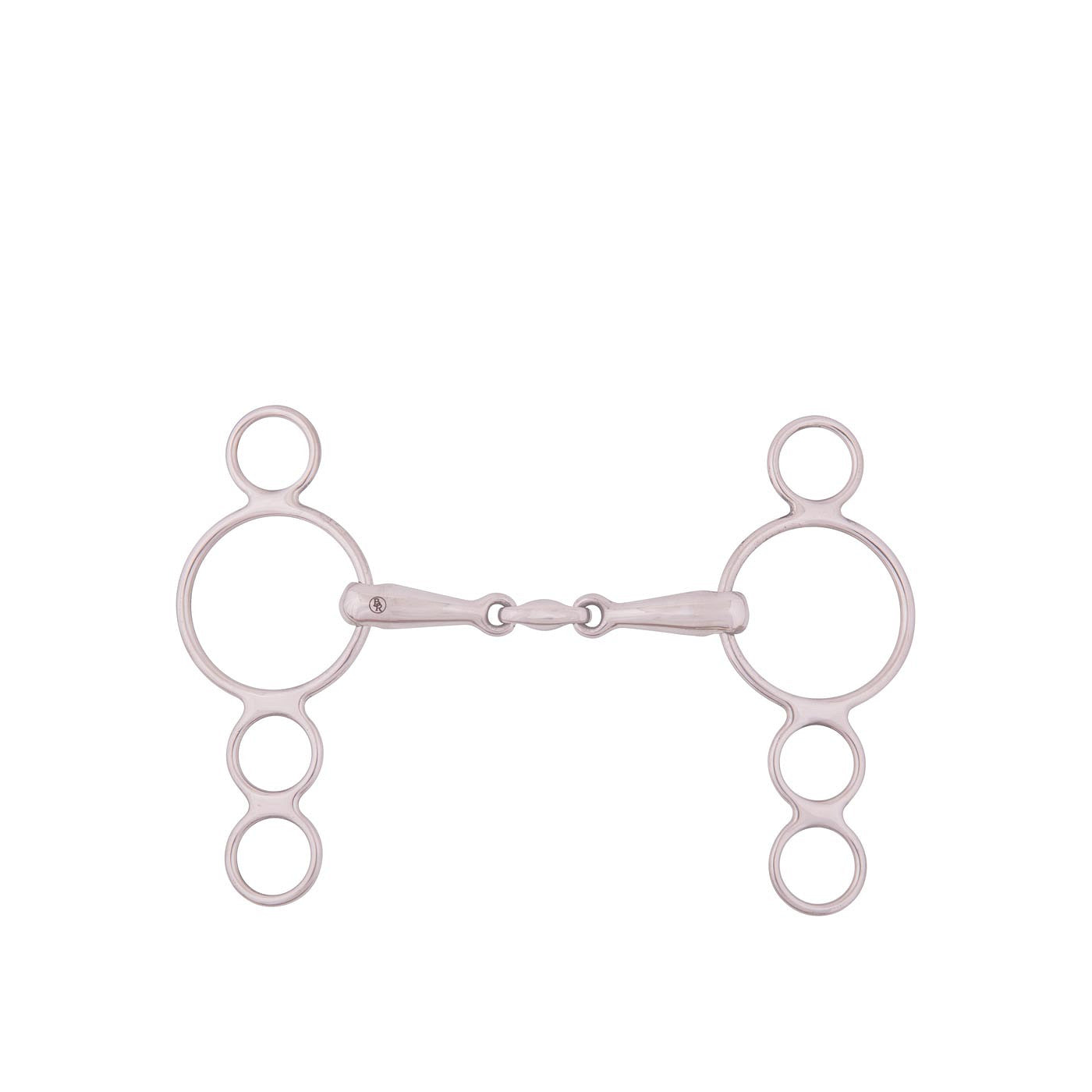 Pessoa 4-Ring, doppelt gebrochenes Wassertrensen, massives Edelstahl, Ringe 65 mm. Das Mundstück hat eine Dicke von 18 mm.