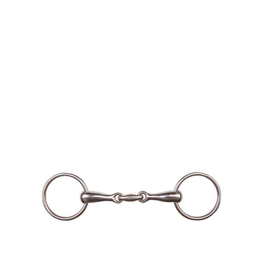 Doppelt gebrochen, massives Edelstahl, Ringe 55 mm bei 11.5 cm und 65 mm bei den anderen Größen. Das Mundstück hat eine Dicke von 18 mm.