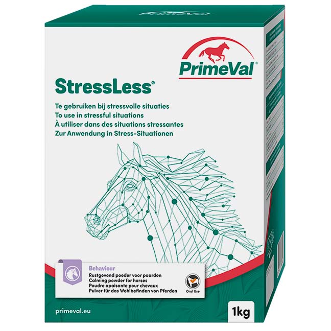PrimeVal StressLess® Pulver ist ein natürliches, beruhigendes Ergänzungsfuttermittel, das nervösen, hyperaktiven und angespannten Pferden hilft, sich in Stresssituationen zu entspannen, ohne ihre Aufmerksamkeit zu beeinträchtigen. Es eignet sich ideal für den Einsatz beim Transport, bei Tierarzt- und Hufschmiedbesuchen, in neuen/ungewohnten Situationen und zur Leistungssteigerung (im Sport). Die Inhaltsstoffe von PrimeVal StressLess® Pulver stehen nicht auf der FEI-Liste verbotener Substanzen.
