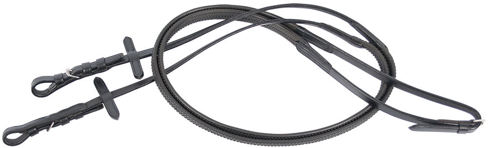 Zügel, Nylon mit weicher Gummibeschichtung, Lederenden. 18 mm breit.