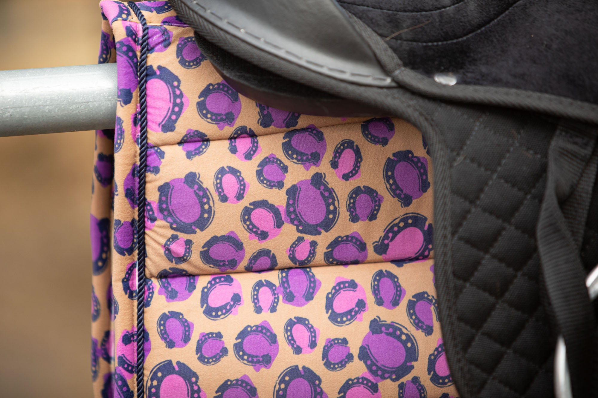 Samt-Satteldecke mit Allover-Print sowie Gurt- und Sattelschlaufen.