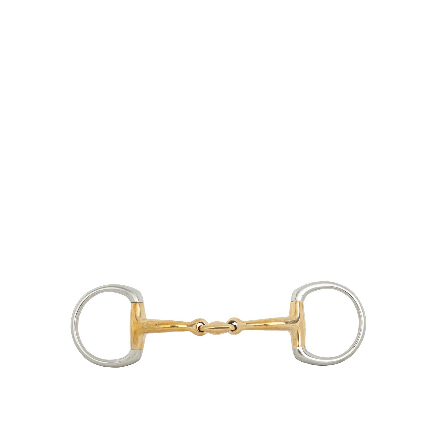 Ce mors Baucher double brisure de haute qualité est fabriqué en Cuprigan massif avec des anneaux en acier inoxydable. Le Cuprigan est un alliage composé de 89% de cuivre, 7% d'aluminium, 3% de fer et 1% de zinc. Le processus d'oxydation du matériau dégage une odeur et un goût agréables. La forme anatomique suit la morphologie de la bouche du cheval, créant une répartition douce et uniforme de la pression. Grâce à la combinaison de la forme et de la composition unique du Cuprigan, le processus de mastication et la production de salive sont stimulés, ce qui permet d'établir une bonne connexion avec la bouche sensible du cheval. Le mors agit doucement sur la bouche. L'embouchure a une épaisseur de 12 mm et les anneaux ovales ont un diamètre de 55 mm. ??