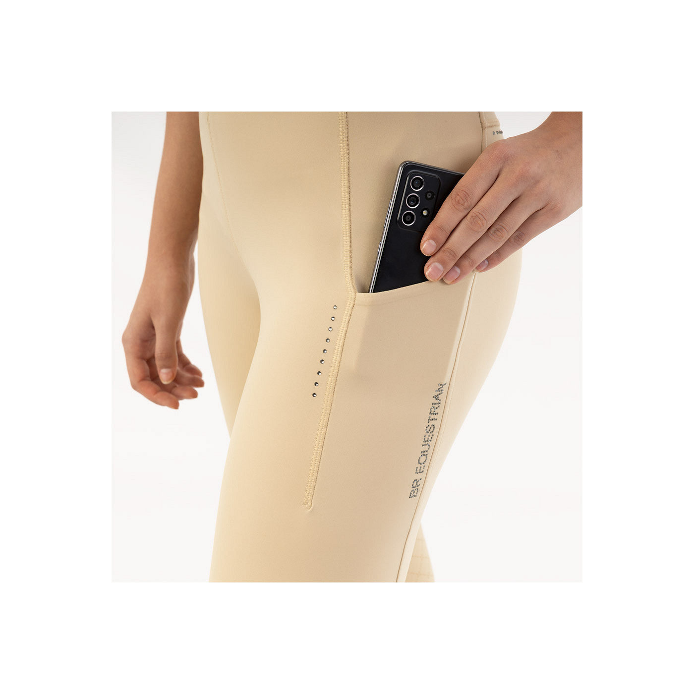 • Tekst “BR Equestrian” van kleine strass-steentjes op linkerzak