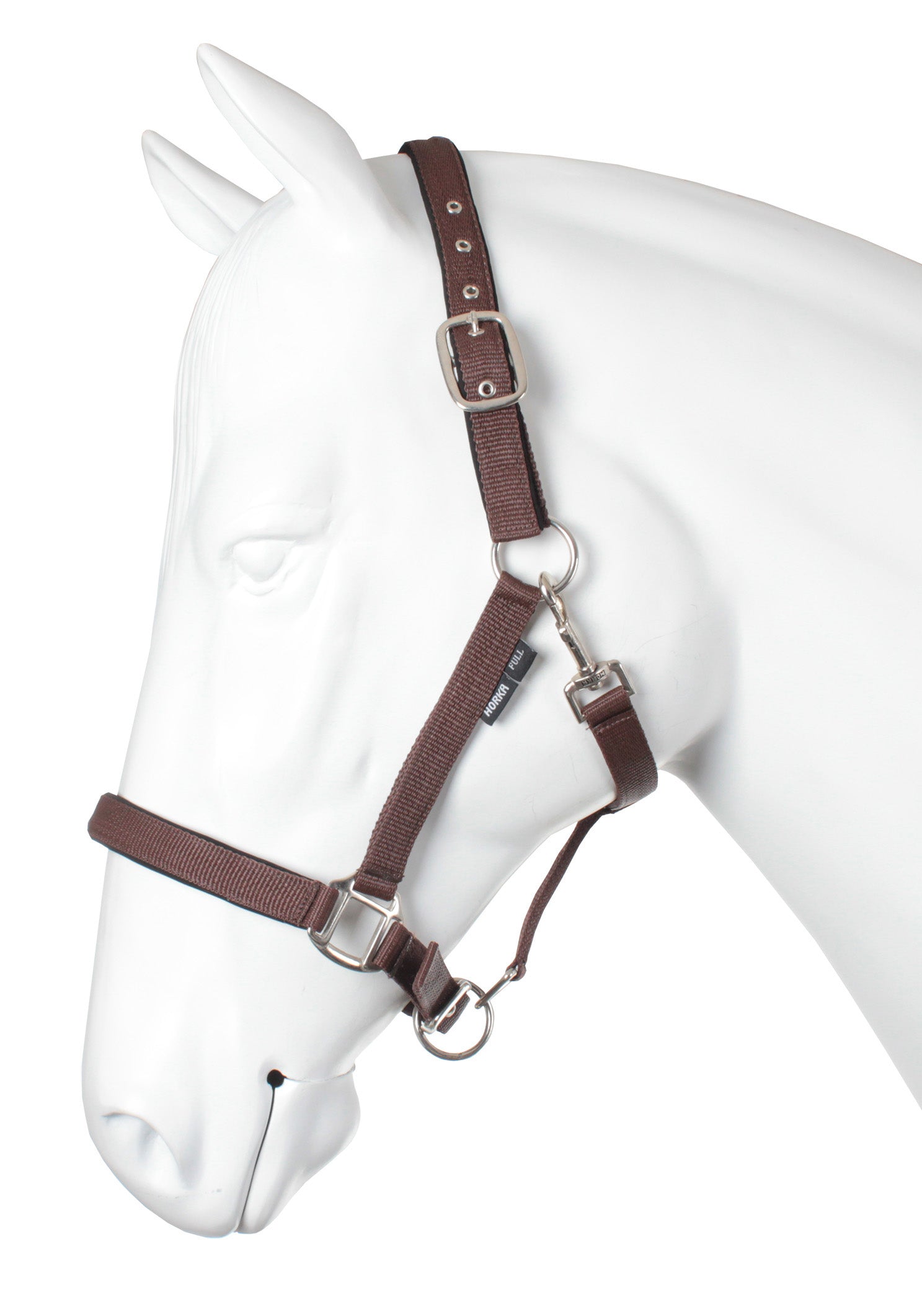 Halster Nubuck. Productspecificaties: PP halster Verstelbaar kopstuk met gesp Verstelbare neusriem Kopstuk en neusriem zijn gevoerd met zacht nubuck