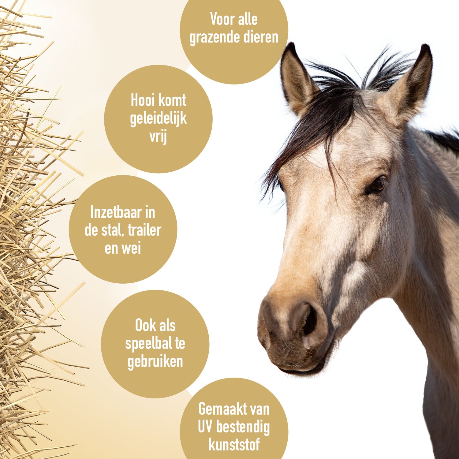Avec la mangeoire lente à foin Fun and Flex, assurez-vous que votre cheval mange sainement et de manière responsable, tout en évitant l'ennui et en lui offrant des heures de plaisir. Ce produit est un atout précieux pour tout propriétaire de cheval souhaitant offrir à son cheval un délicieux repas tout en favorisant sa santé et son bien-être.