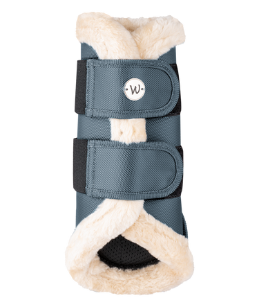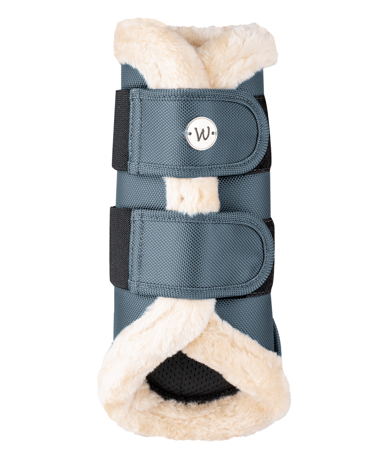 Botte de dressage avec intérieur en mesh respirant. L'extérieur est en tissu robuste 1680 deniers offrant une excellente protection contre les chocs. La bordure en fausse fourrure douce et absorbant les chocs assure un confort optimal. Logo discret en métal argenté. Assortie à notre collection Pegasus.