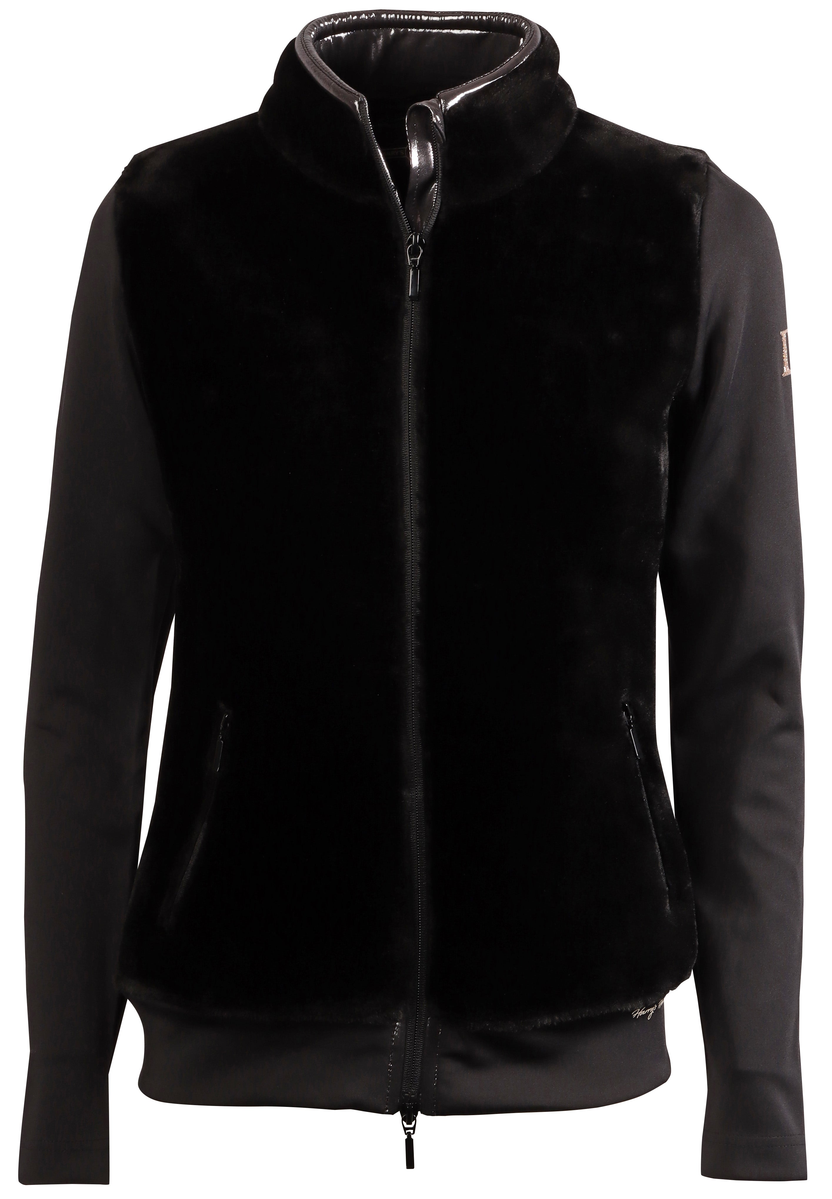 Vest met een body van comfortabel kunstbont en stretchstof mouwen, tweeweg ritssluiting, twee zakken met ritssluiting en glimmend materiaal aan de binnenkant van de kraag.