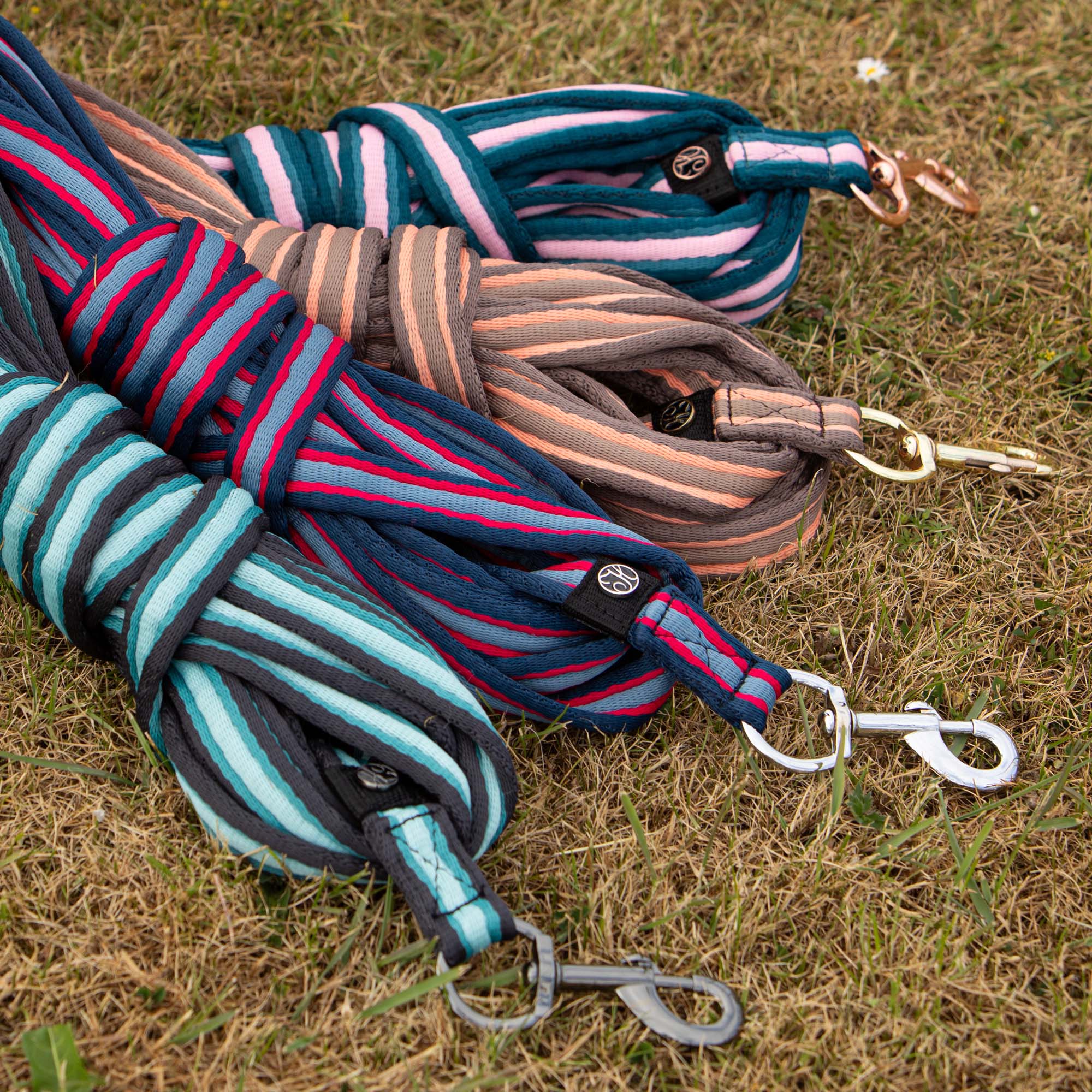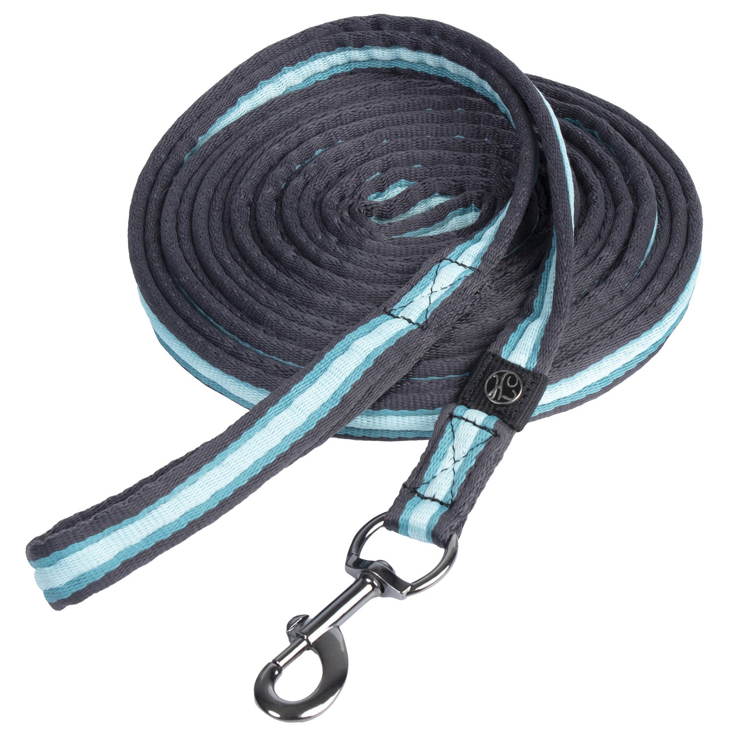 Cette longe souple est fabriquée en polyester résistant et flexible pour une prise en main confortable lors du travail à la longe. Elle est équipée d'un mousqueton pivotant qui suit les mouvements du cheval et d'une boucle à son extrémité pour une meilleure adhérence. Longueur : 8 mètres. Livrée dans un sac de rangement transparent zippé, idéal pour un rangement et un transport faciles.