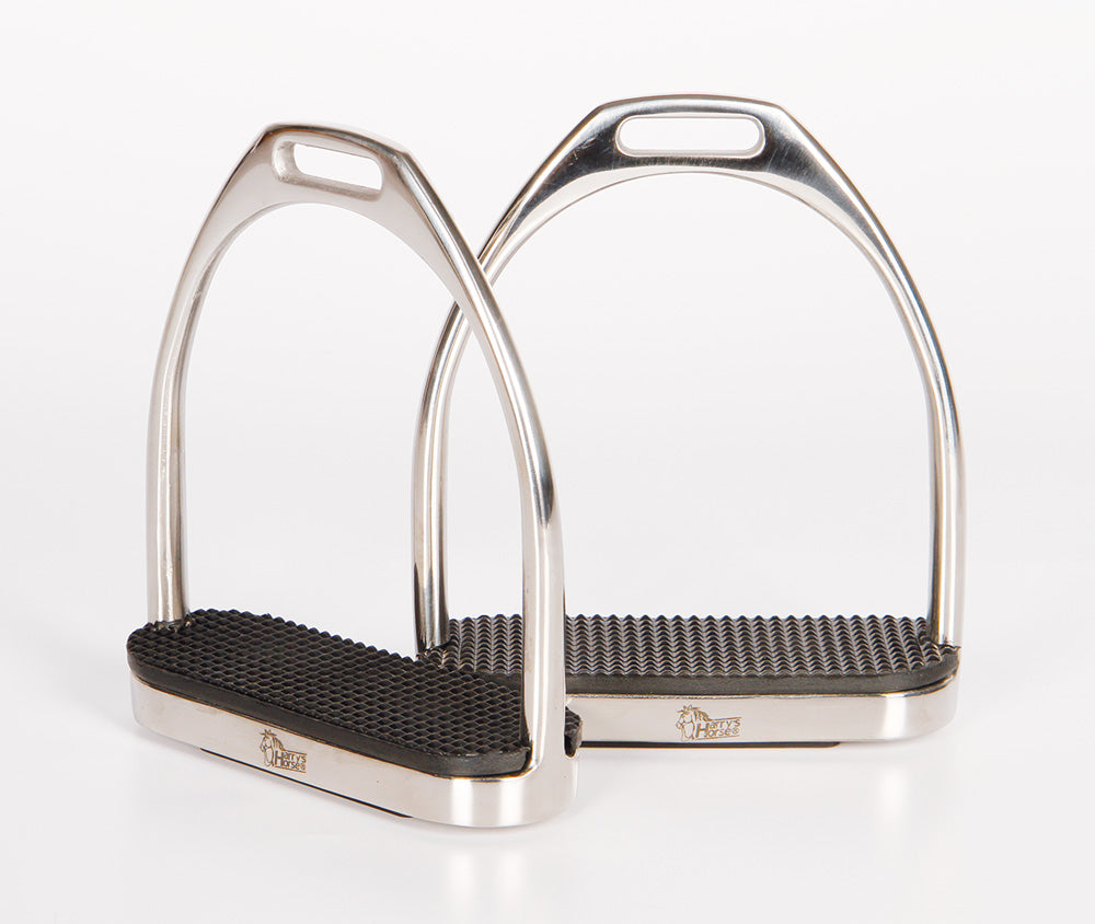 Vervaardigd van hoogwaardig RVS. Zorgt voor comfort en stabiliteit voor paard en ruiter incl. rechte, elastische zooltjes.