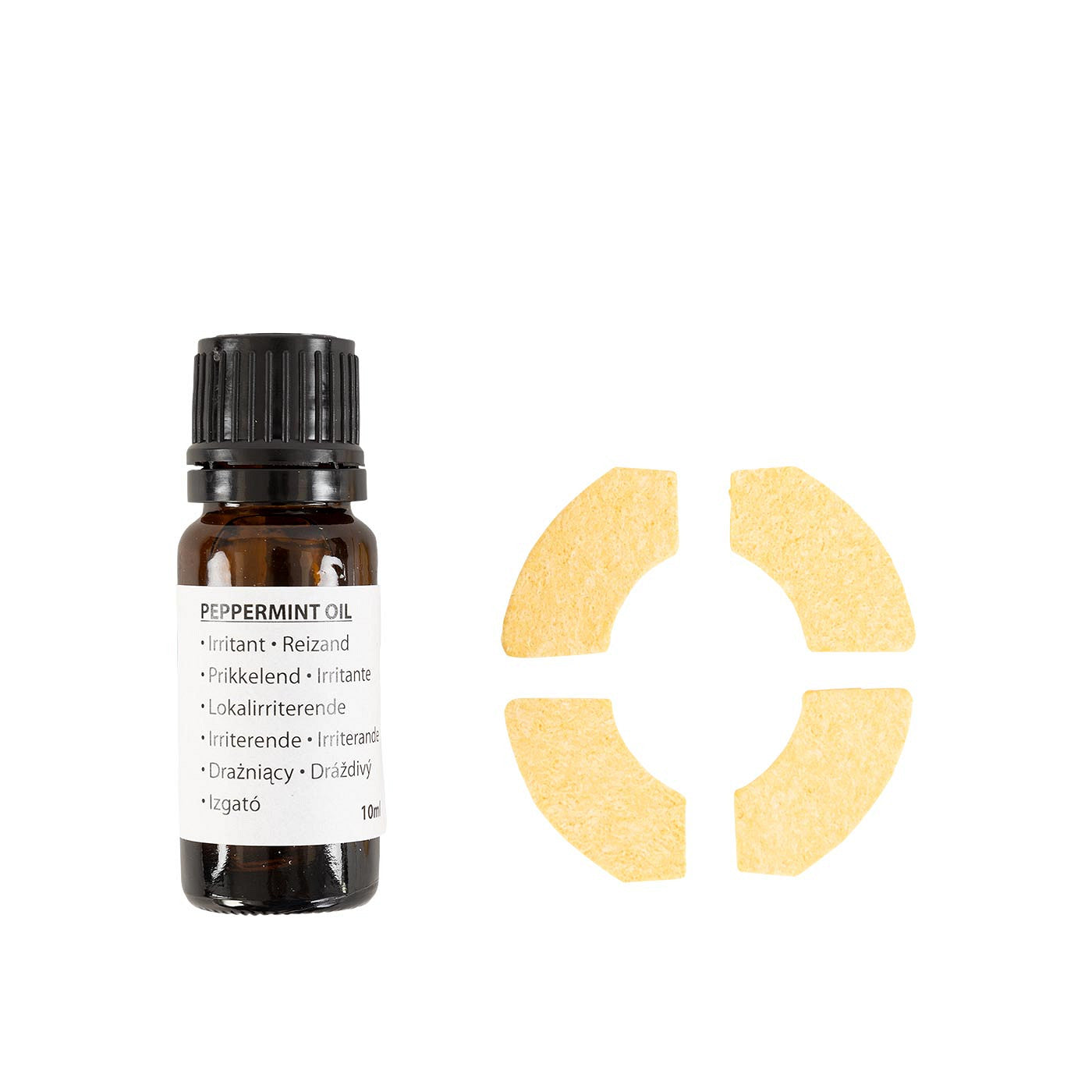 Comprend uniquement le support et quatre éponges parfumées à la menthe, un flacon supplémentaire d'huile de menthe poivrée pour les éponges et une corde de suspension colorée. La pierre à lécher est vendue séparément : article 825958.