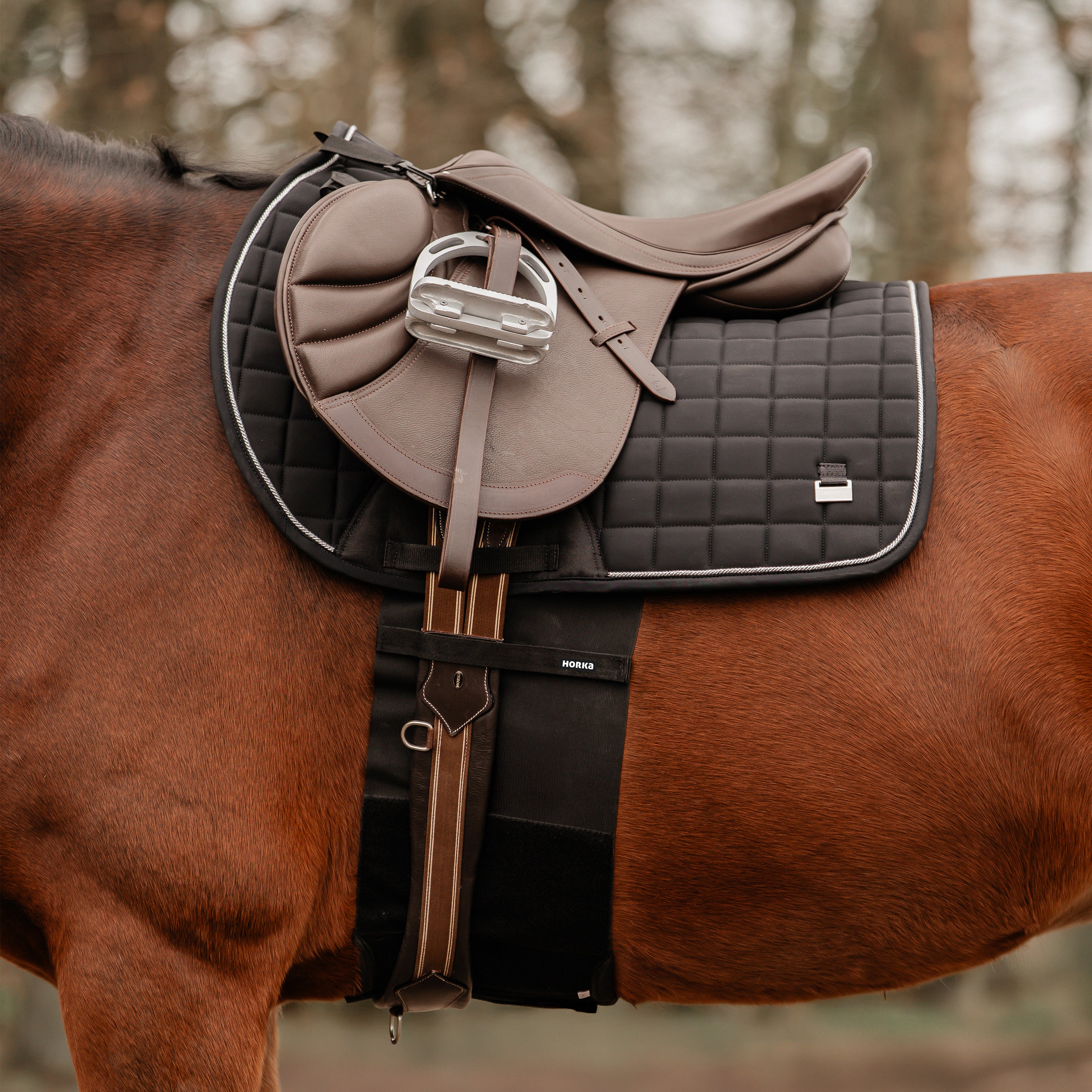 De buikbeschermer voorkomt schuurplekken op de huid van het paard. Ideaal voor geschoren paarden of paarden met een gevoelige huid. Makkelijk te bevestigen aan het zadel via clips aan de voorkant. Productspecificaties: < Beschermt de huid tegen schuurplekken op de huid Te gebruiken bij paarden die net geschoren zijn of een gevoelige huid hebben 2 clips aan de voorkant waarmee je de bandage aan het zadel kunt bevestigen Wasbaar in de machine op 30 graden Materiaal:< 60% Polyester 40% Elastaan