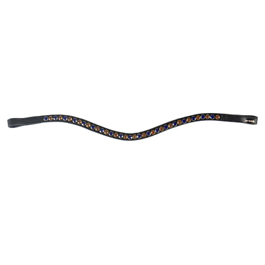 Élégant frontal rond en strass qui se drape sur la tête du cheval.