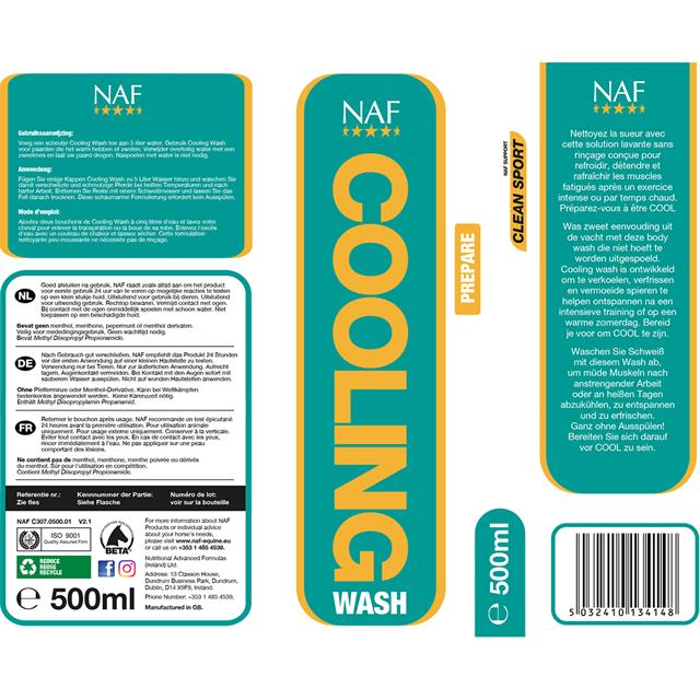 Versez quelques bouchons de Cooling Wash dans un seau, ajoutez 5 litres d'eau et épongez votre cheval chaud, en sueur ou sale avec. Retirez l'excès d'eau avec un couteau de sueur et laissez votre cheval sécher. Le produit de lavage mousse très peu et ne nécessite pas de rinçage.