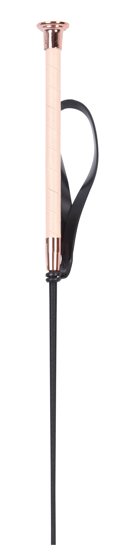 Cravache avec bouton, poignée en cuir vegan coloré et dragonne.
