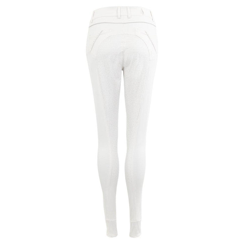 De rijbroek Brighton is afgewerkt met glanzende, zilveren elementen, zoals contrastbiezen en imitatiediamanten op de zakken. De stretchstof, elastische tailleband en elastische beensluiting zorgen voor een optimale pasvorm. Het siliconen zitvlak met grafisch patroon zorgt voor een stabiele zit.