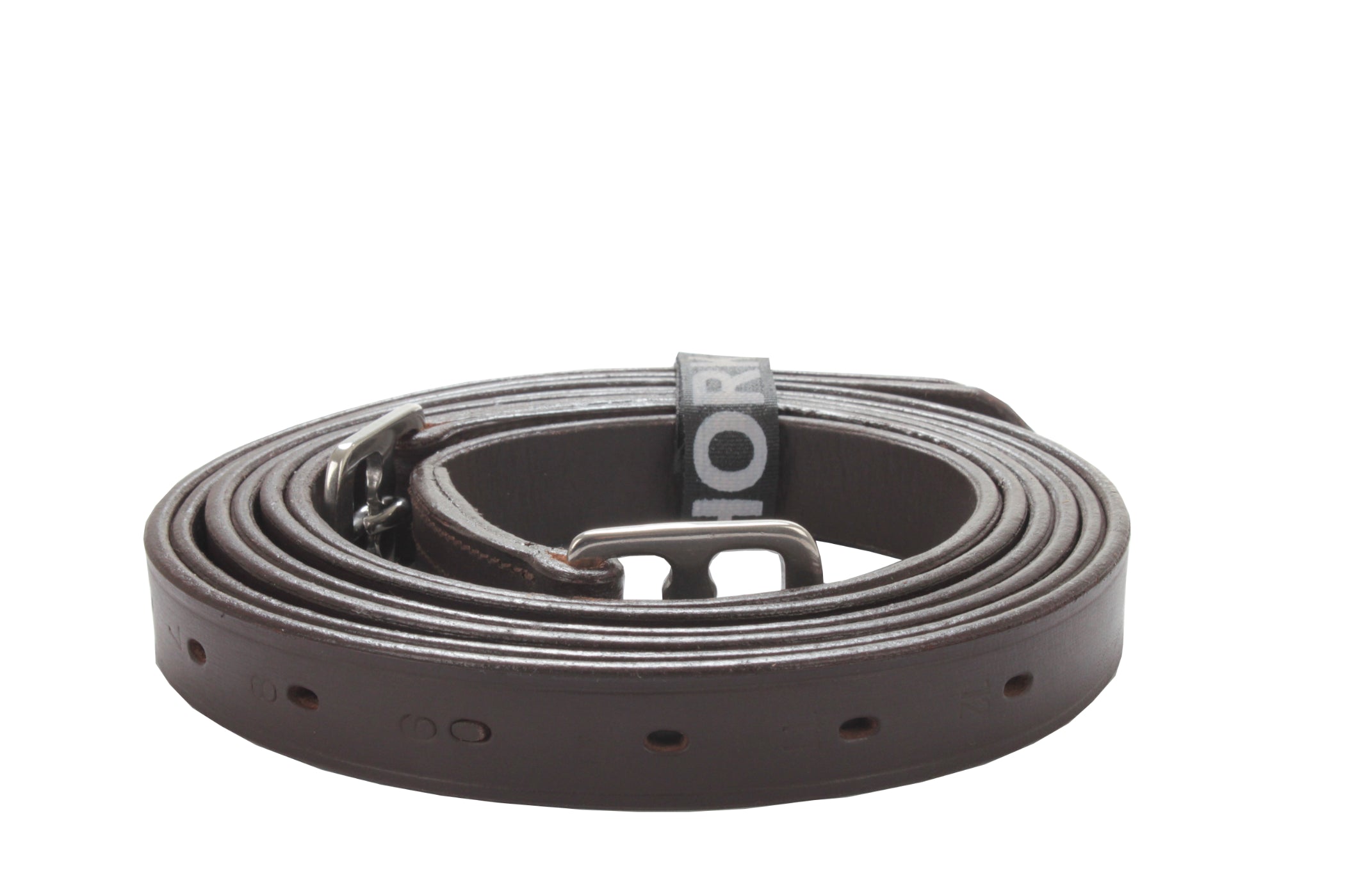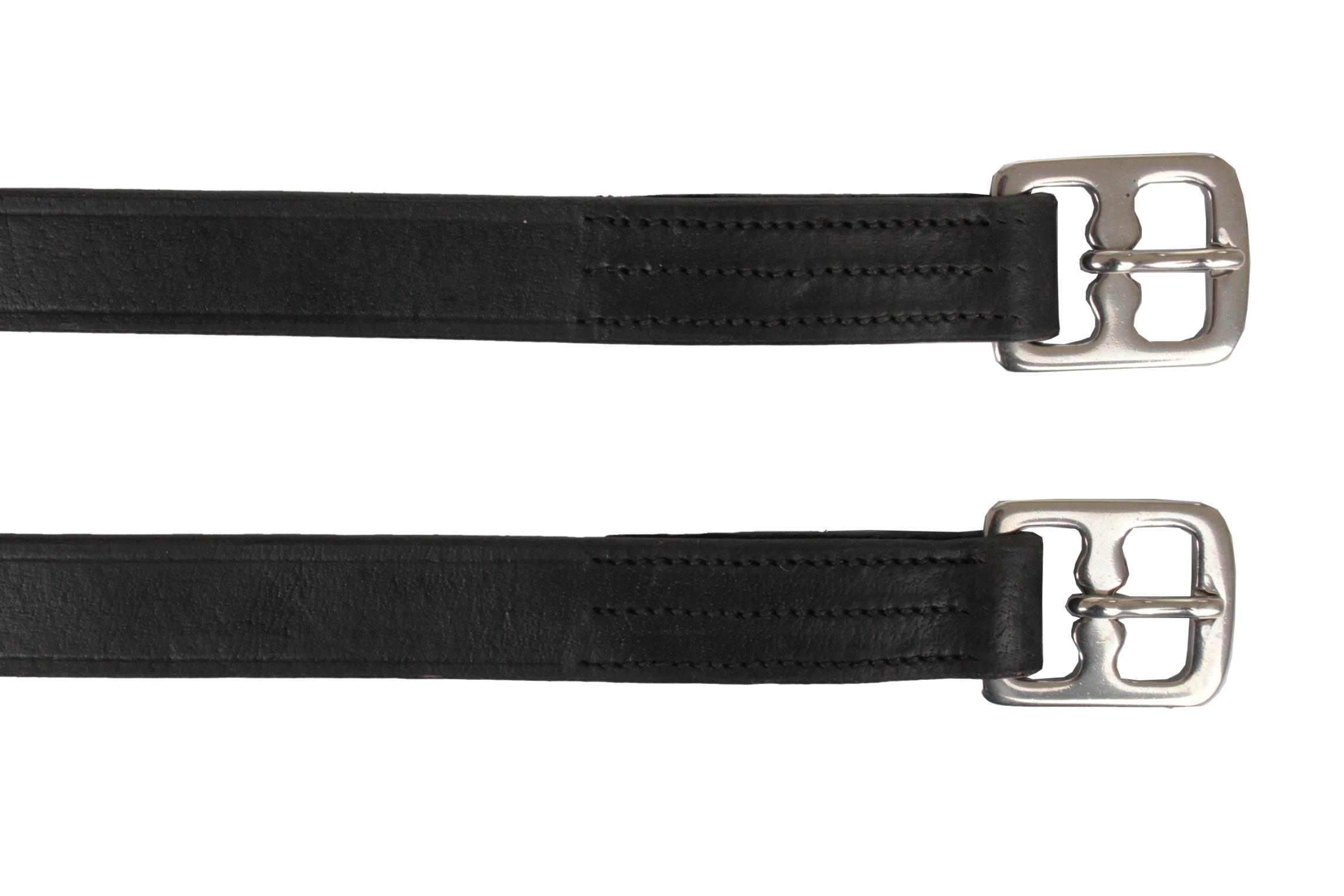 Leren stijgbeugelriemen. Productspecificatie: Roestvrijstalen gespen