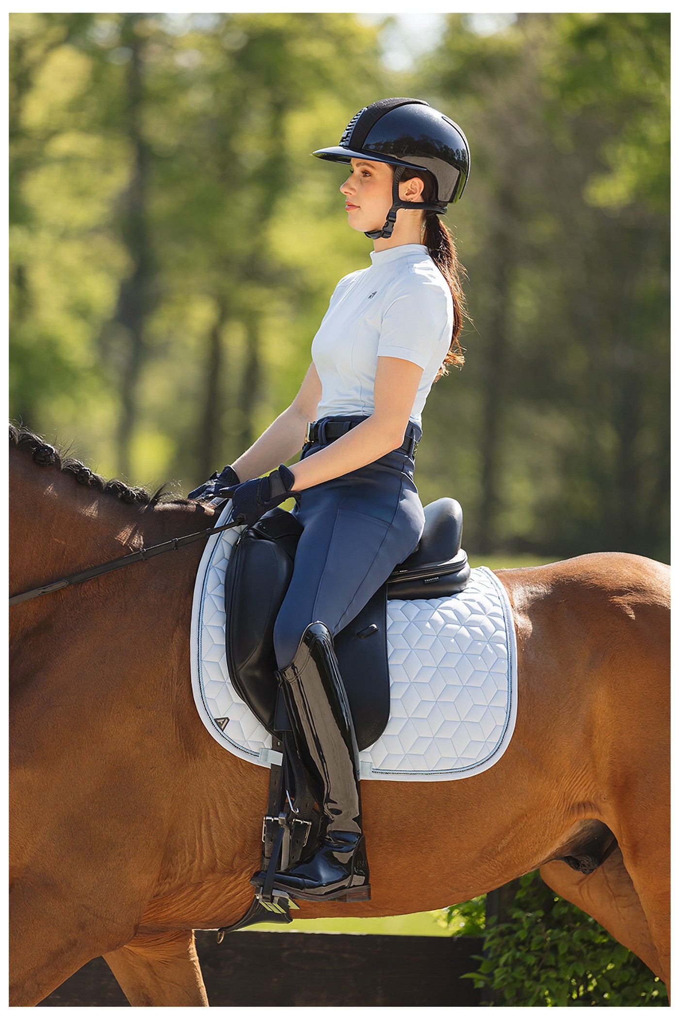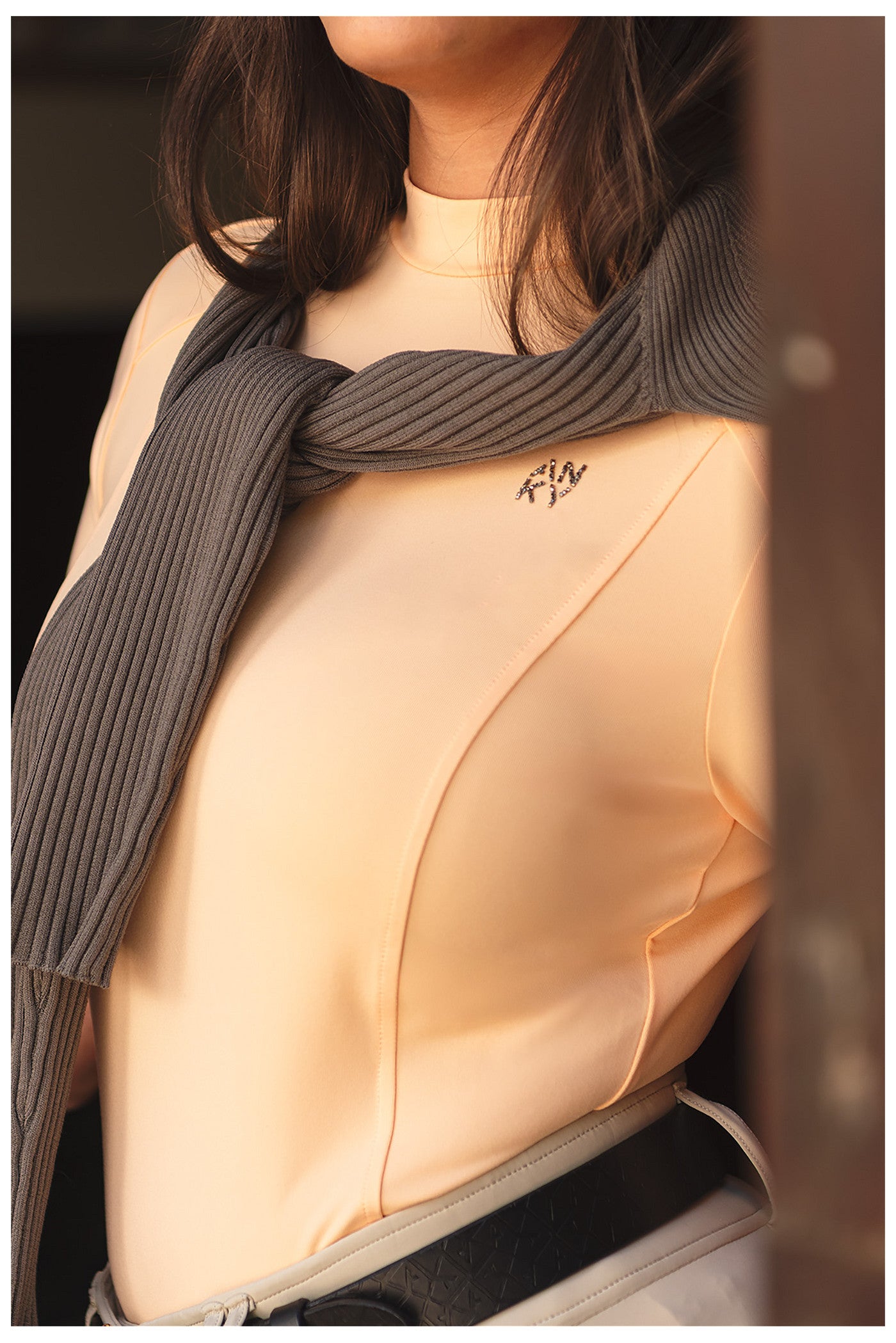 - Glanzend logo van steentjes links op de borst