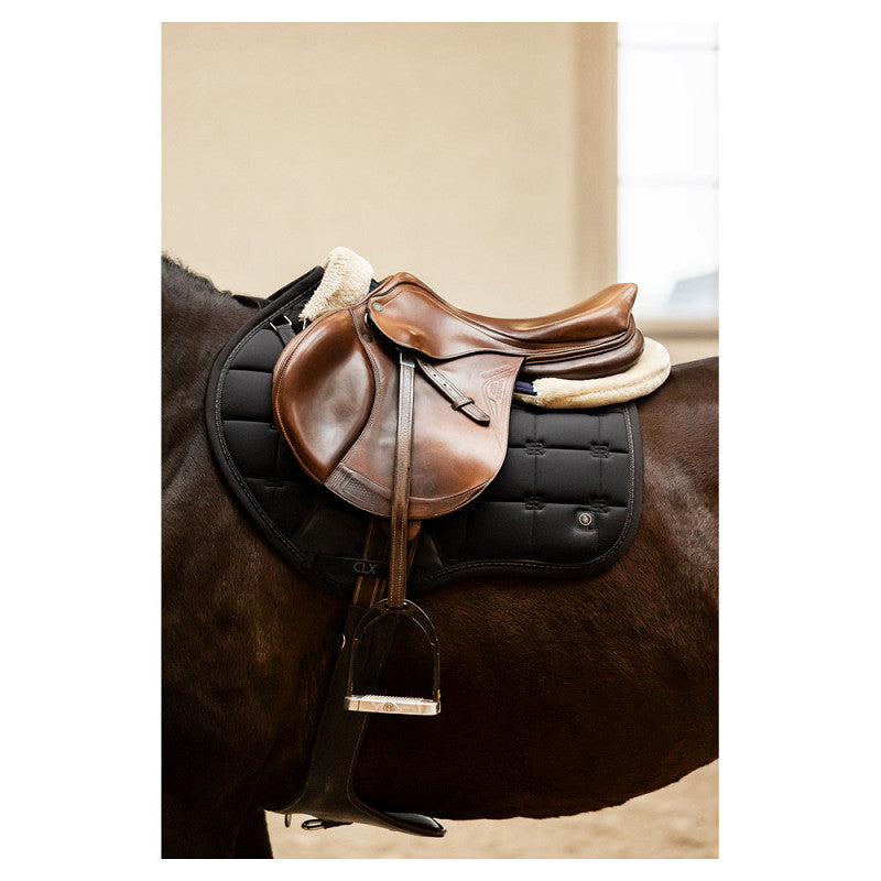 Het stijlvolle CLX zadeldek is vierkant gestept met BR logostiksels voor een unieke look en afgewerkt met twee subtiele biezen. Het zadeldek is uitgevoerd met verstelbare zadel- en singellussen met klittenband en een extra versteviging van synthetisch leder bij de singellus.