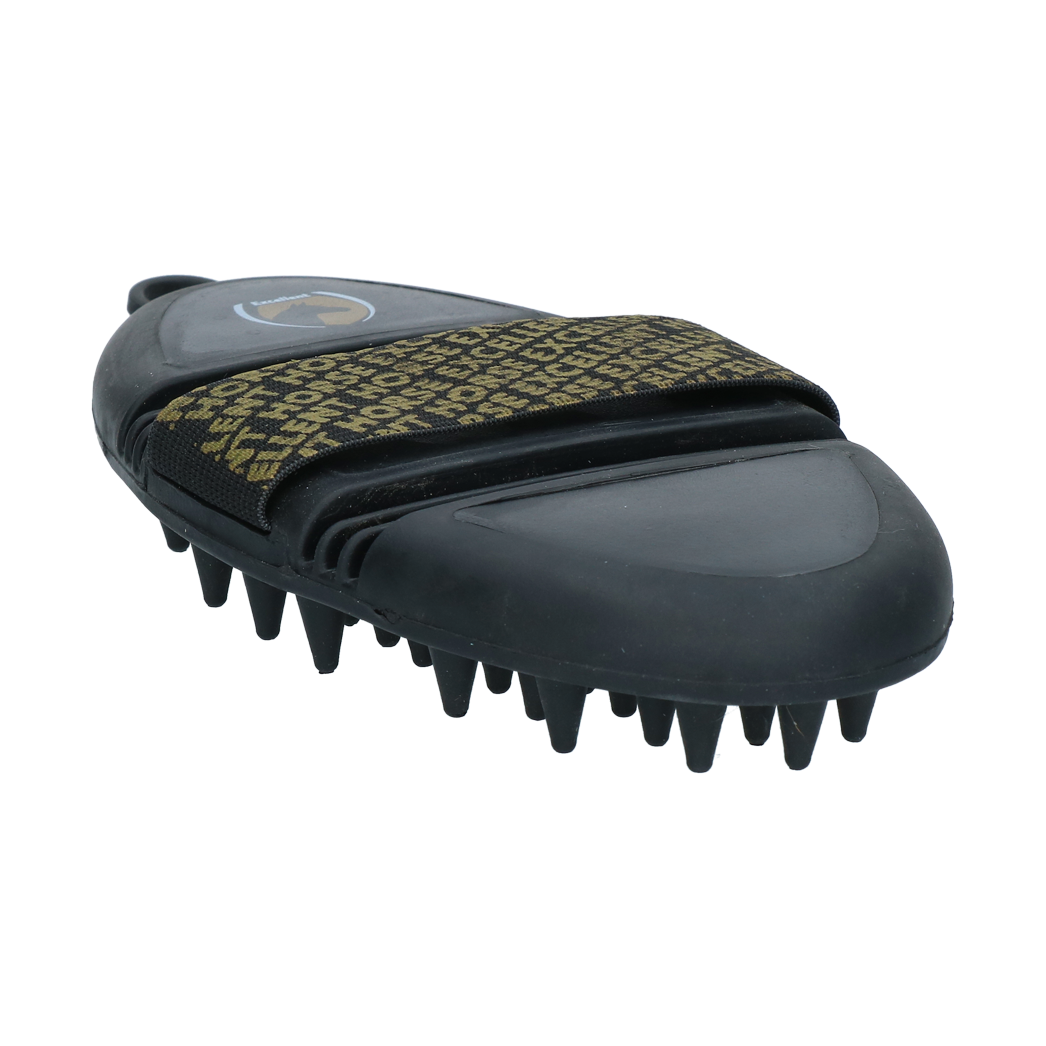 Deze borstel met noppen masseert de huid, stimuleert de bloedsomloop en verwijdert losse haren, vuil en stof. Door de flexibele bovenzijde ligt de borstel comfortabel in de hand en vormt deze zich eenvoudig naar het lichaam van het paard.