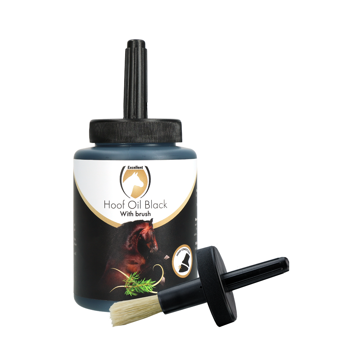Excellent Horse Hoof Oil Black is een zwarte hoefolie voor paarden met tea tree olie. Het beschermt de hoeven, houdt het hoorn elastisch, trekt snel in en zorgt voor een mooie, donkere glans.