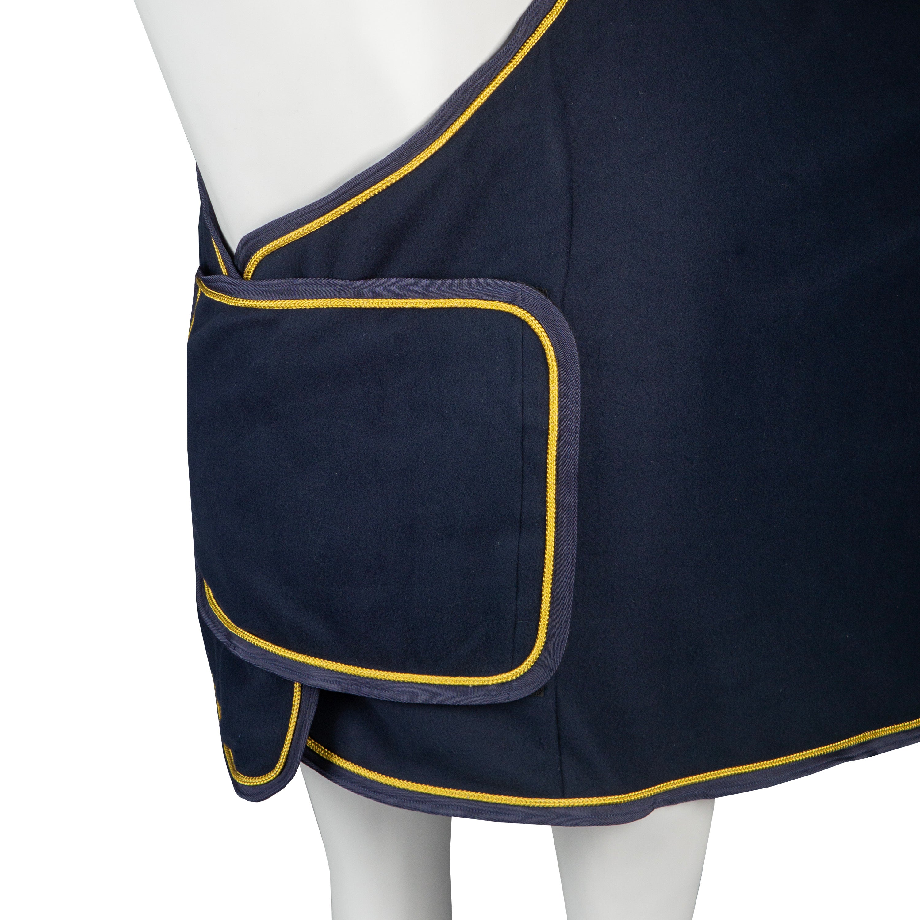 Luxe showdeken met borstflap afgewerkt met chique sierkoord en ornament. Productspecificaties: Enkele sluiting op de borst Borstflap met klittenbandsluiting Afgewerkt met chique sierkoord en ornament Materiaal: 100% polyester