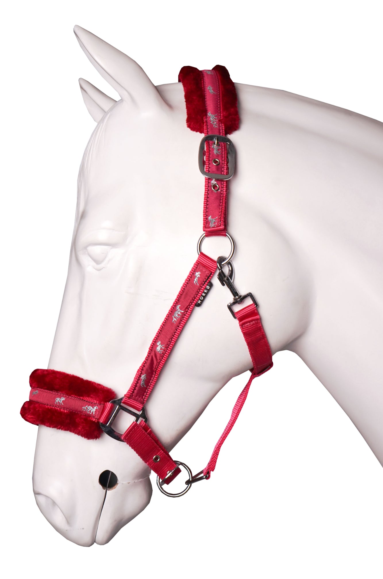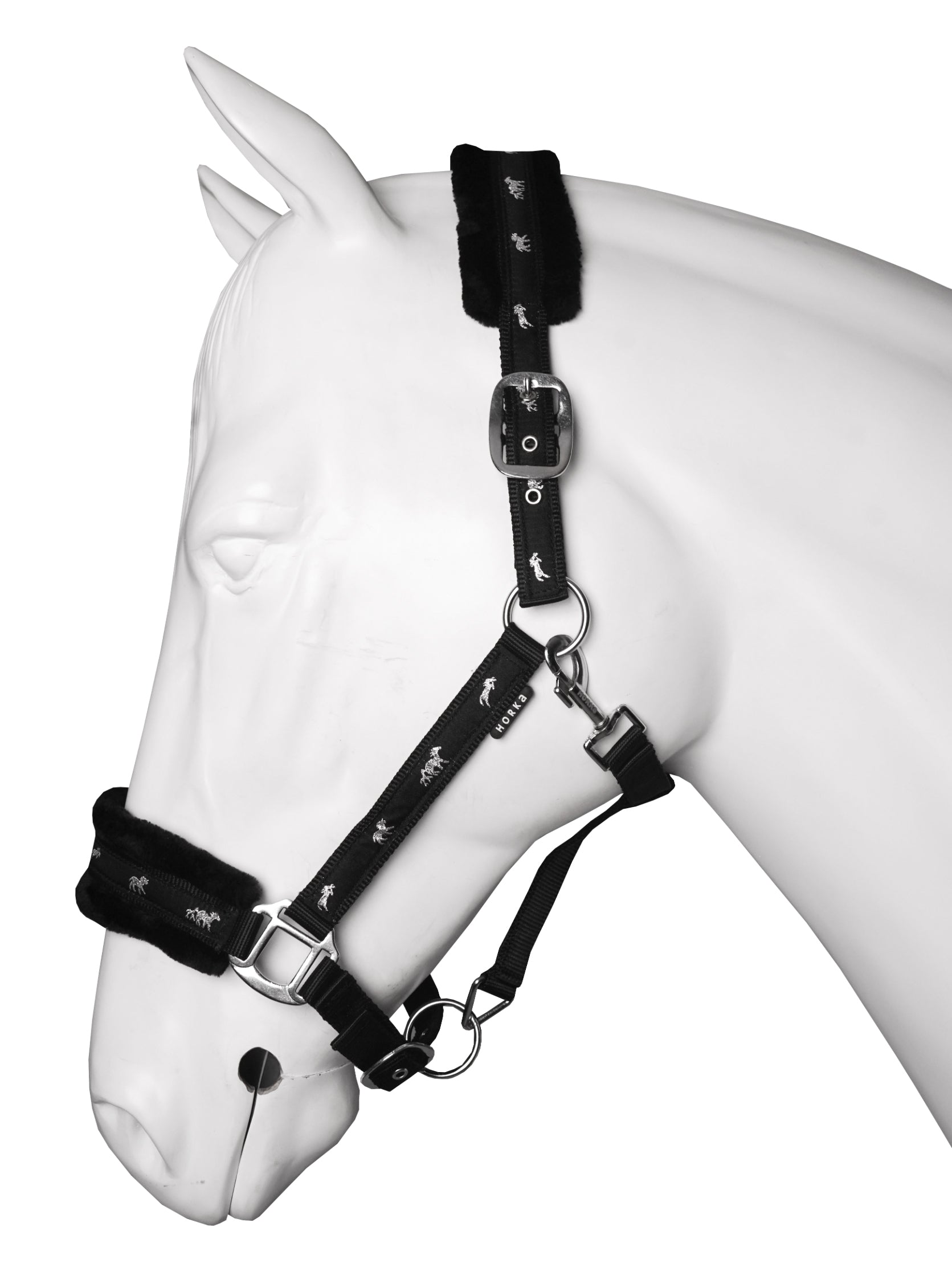 Halster met zachte bontvoering op het neus en hoofddeel. Productspecificaties: Verstelbaar hoofdstuk Verstelbare neusriem