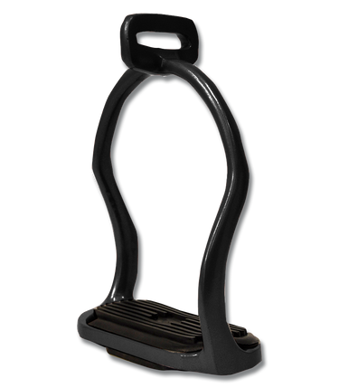 Gebogen scharen met oog voor stijgbeugelriem in een hoek van 90°. Zwarte zoolinzetstukken.