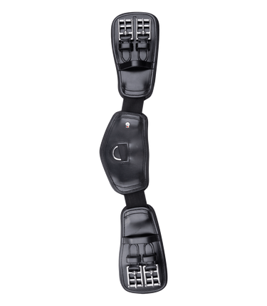 Zacht gevoerde, anatomisch gevormde singel van hoogwaardig leer. De twee elastische inzetstukken zorgen voor extra bewegingsvrijheid tijdens het ademen en gaan de spanning van de riem tegen. De drie leren delen zijn zacht gevoerd en bieden een uitstekende drukverdeling dankzij het grote contactoppervlak. Zonder elastische riemuiteinden, met roestvrijstalen rolgespen en D-ring.