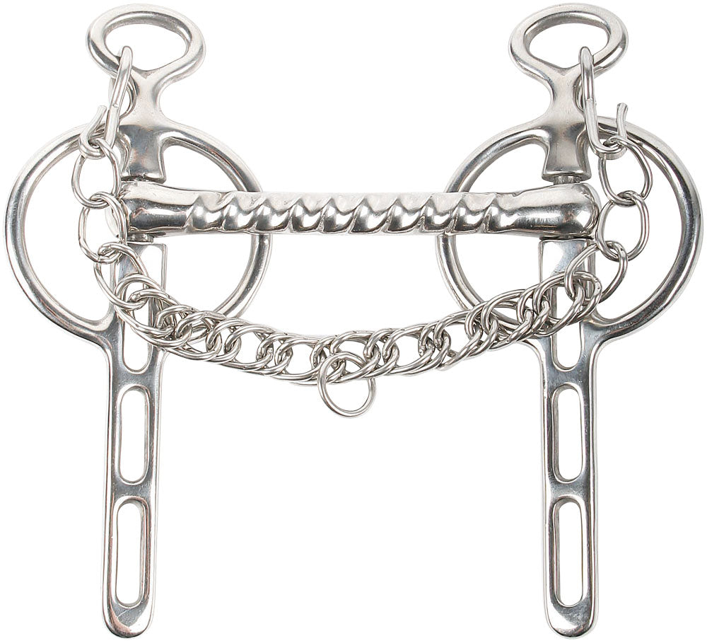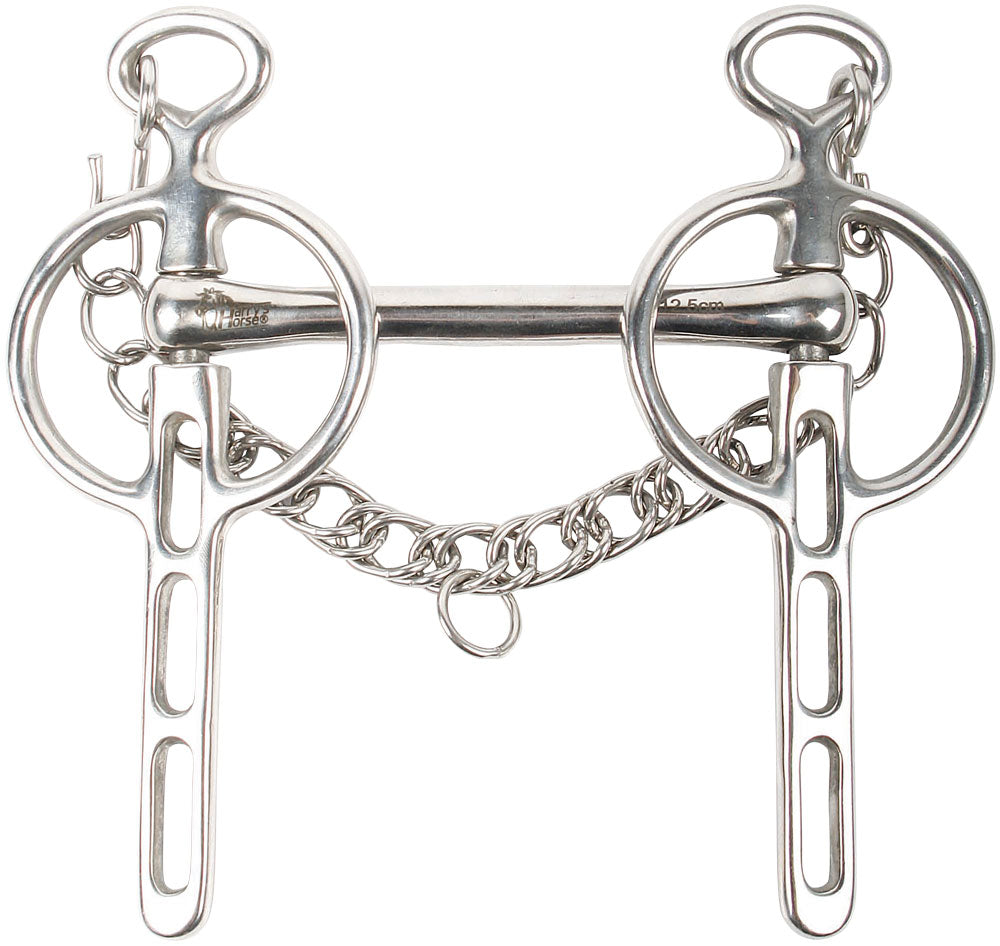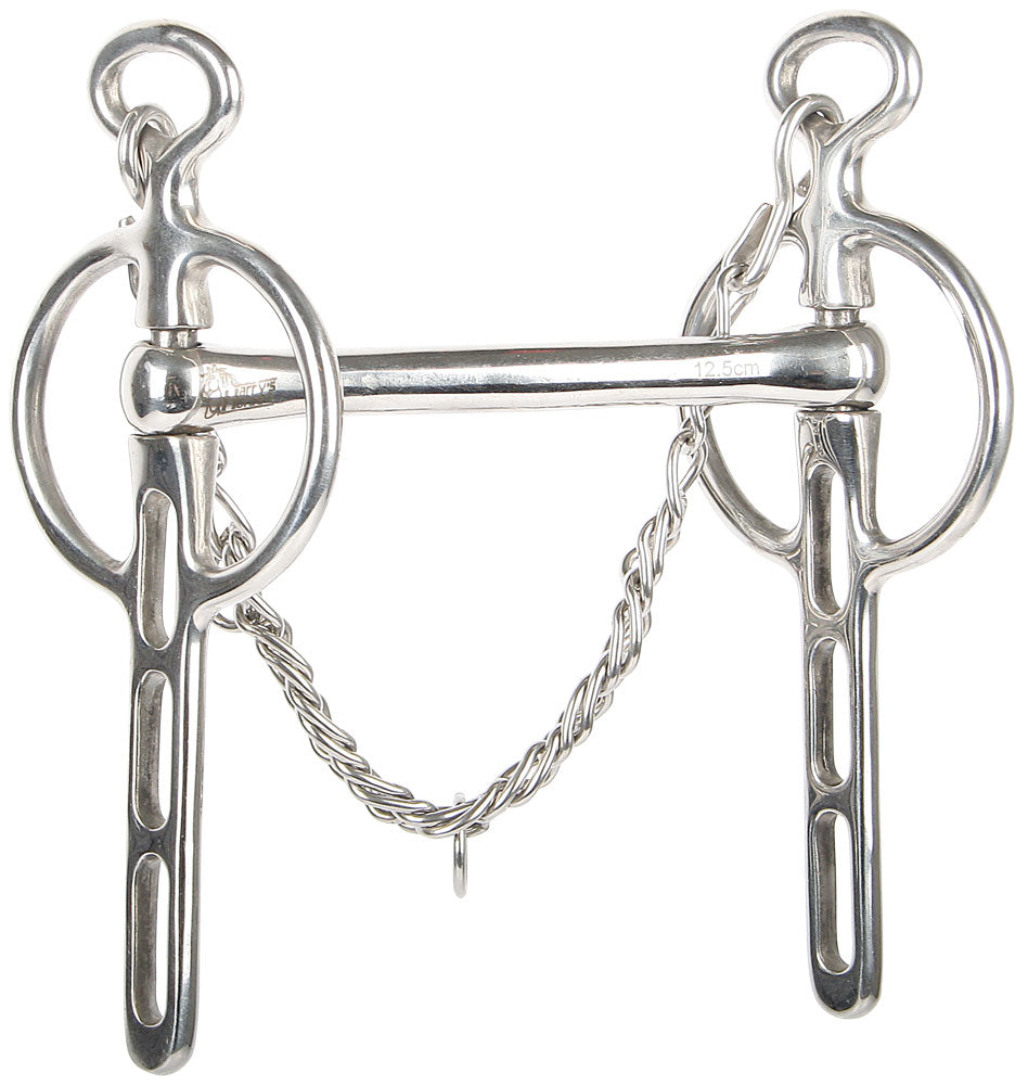 RVS Liverspool stang met recht mondstuk en scharen met 3 slots en lichte pompwerking, inclusief kinketting.