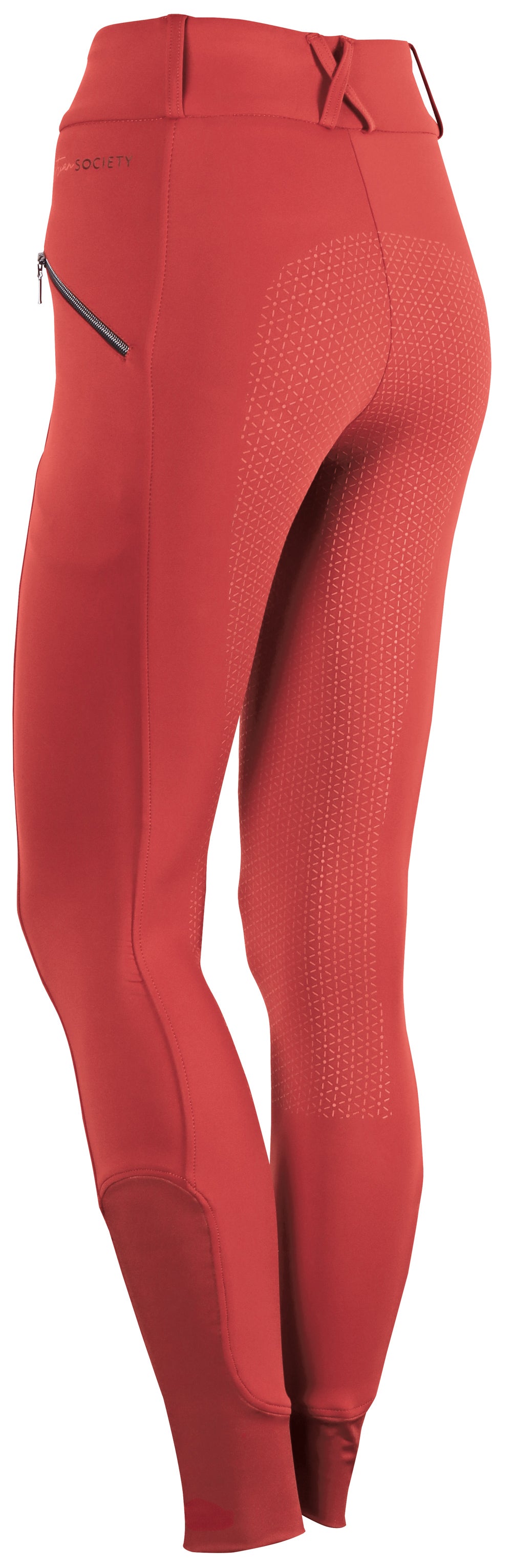Paardrijlegging met een hoge tailleband met riemlussen waarvan een brede met kristallen op de achterkant, twee steekzakken met kristallen, zitvlak met een siliconen print voor extra grip in het zadel en een elastische inzet bij de enkels voor meer comfort in je paardrijlaarzen.