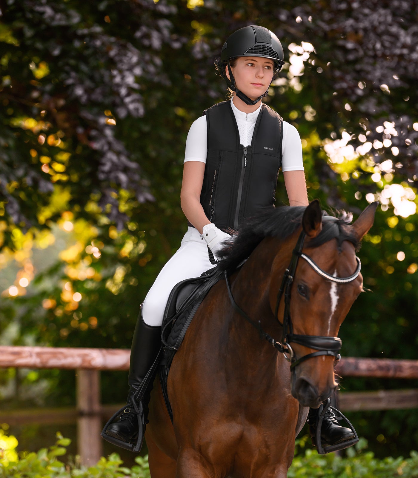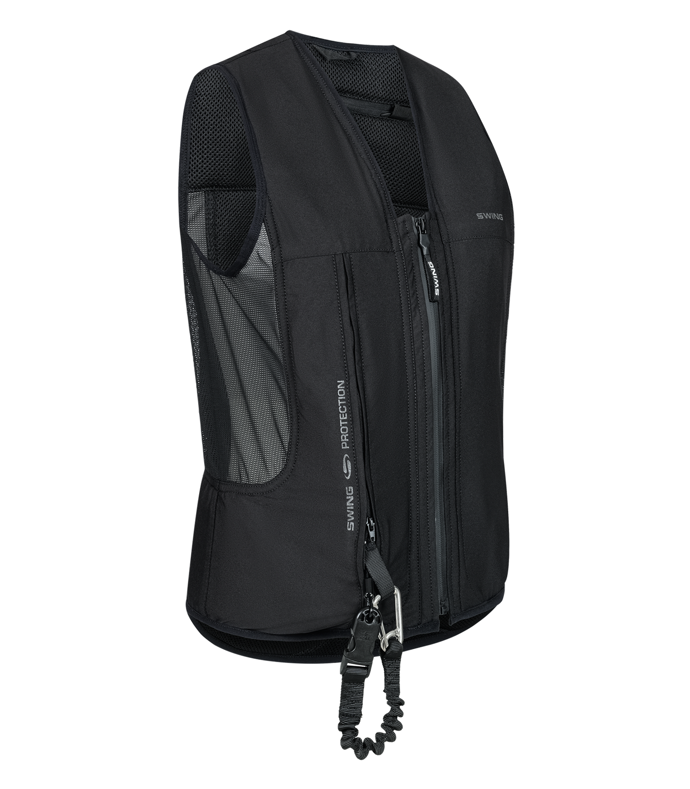 Het nieuwe SWING P25 AIR airbagvest zet nieuwe standaarden in de paardensport en biedt een innovatief beschermingsmechanisme dat binnen enkele seconden reageert wanneer het erop aankomt. Getest volgens de nieuwste NF S72-800:2022-norm, voldoet het aan de hoogste eisen voor airbagsystemen in de paardensport – voor extra veiligheid met maximale bewegingsvrijheid.