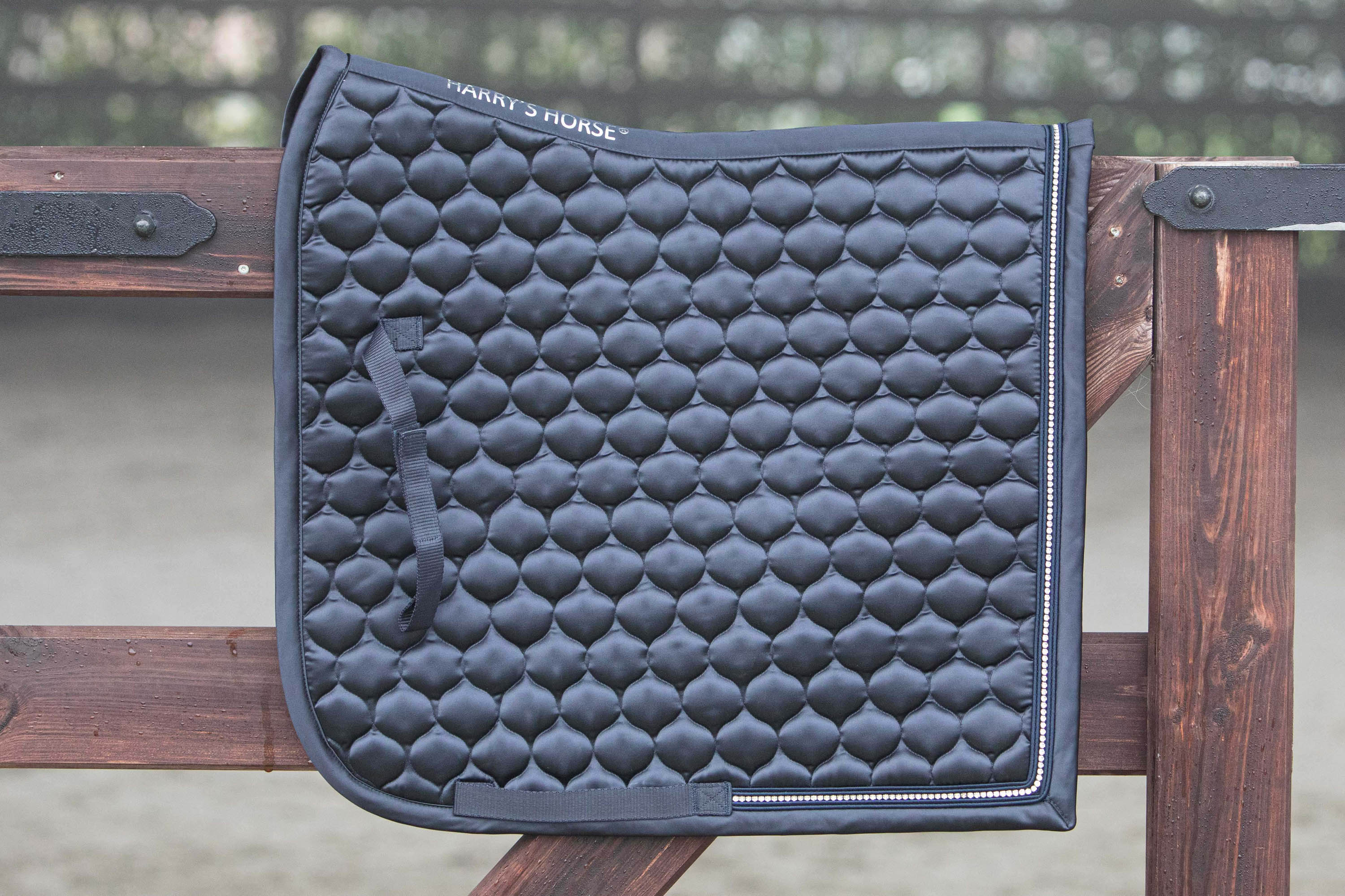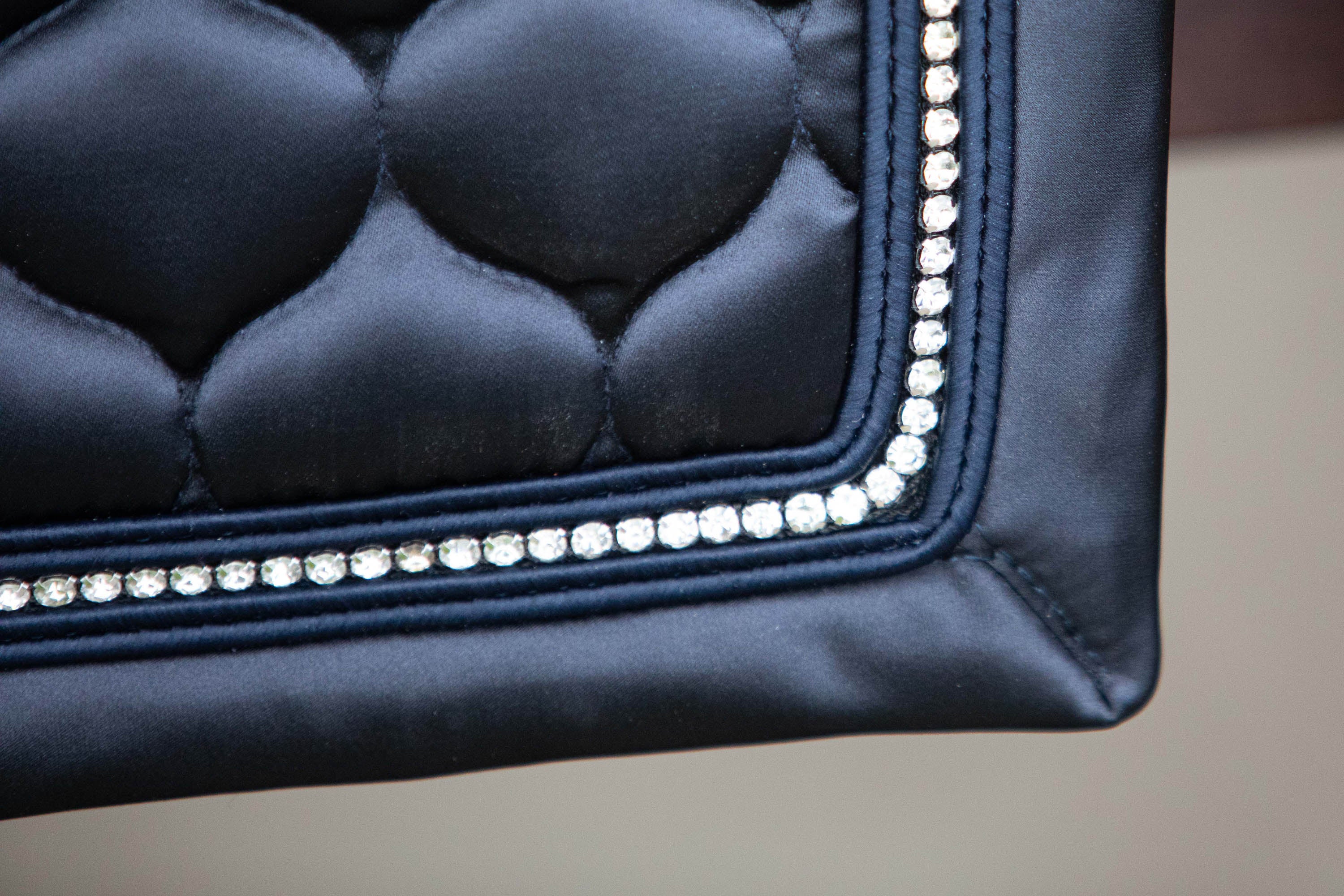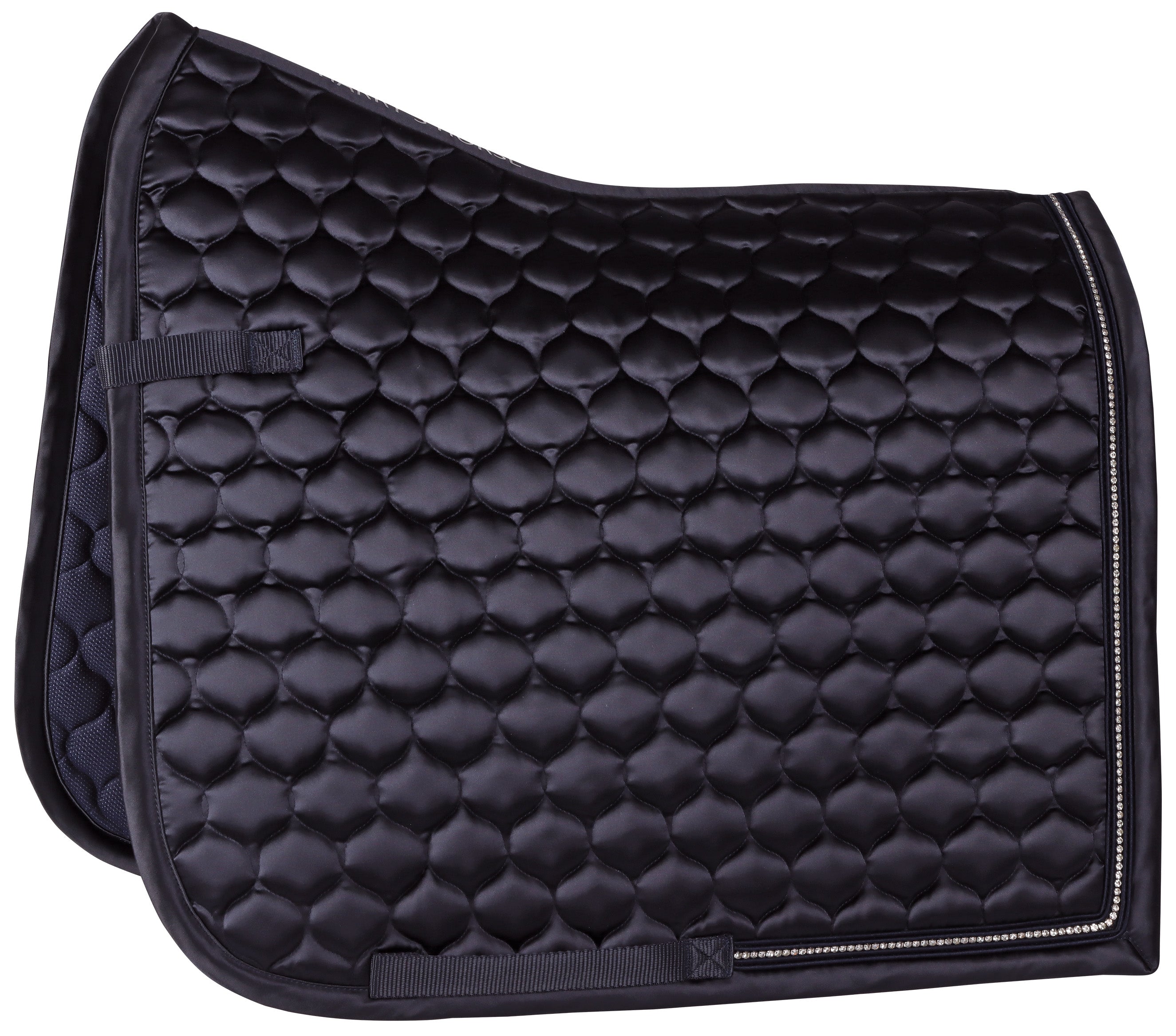 Satijn zadeldek met een koord en een rij kristallen aan de achterzijde van het zadeldek, singel- en zadellussen en coolmesh voering.