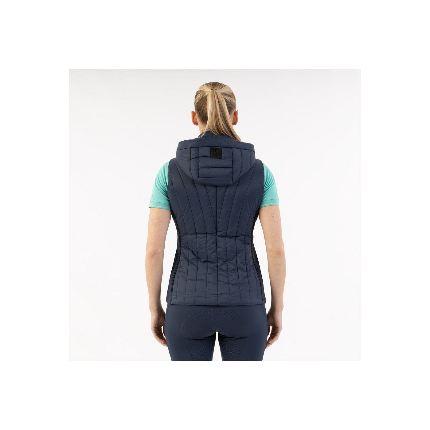 - Elegant gewatteerde en speels gestepte bodywarmer met afneembare capuchon