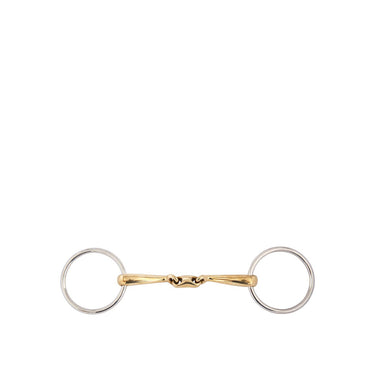 Le mors à olives à double brisure Soft Contact est fabriqué en Cuprigan massif avec des anneaux en acier inoxydable. Le Cuprigan est un alliage composé de 89% de cuivre, 7% d'aluminium, 3% de fer et 1% de zinc. Le processus d'oxydation du matériau lui donne une odeur et un goût agréables. La conception anatomique épouse la forme de la bouche du cheval, ce qui crée une répartition de la pression douce et uniforme. La forme incurvée de l'embout donne un peu plus d'espace aux côtés de la langue. La combinaison de la conception et de la composition unique du Cuprigan stimule la mastication et la salivation, ce qui permet une bonne connexion avec la bouche sensible du cheval. L'embout a une épaisseur de 14 mm et les anneaux du mors ont un diamètre de 65 mm.