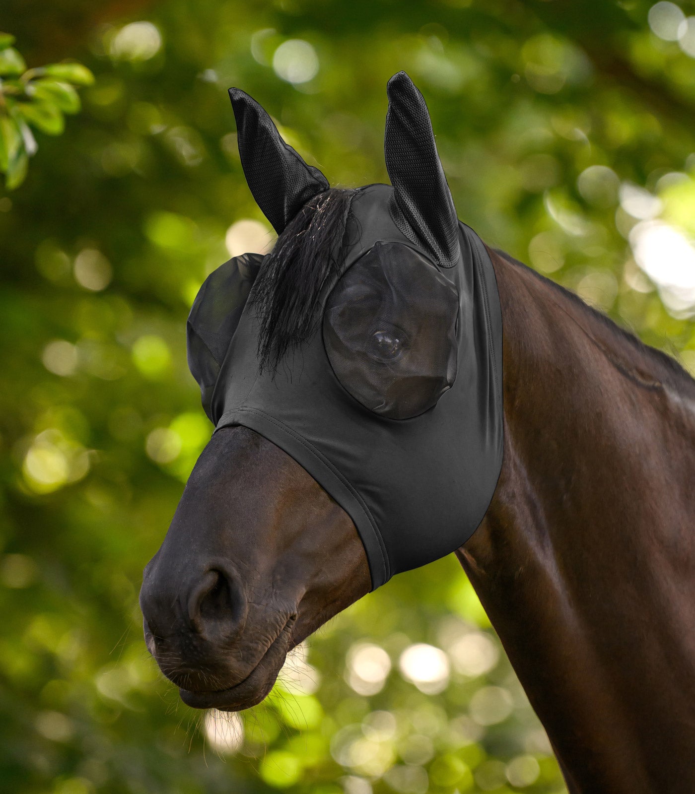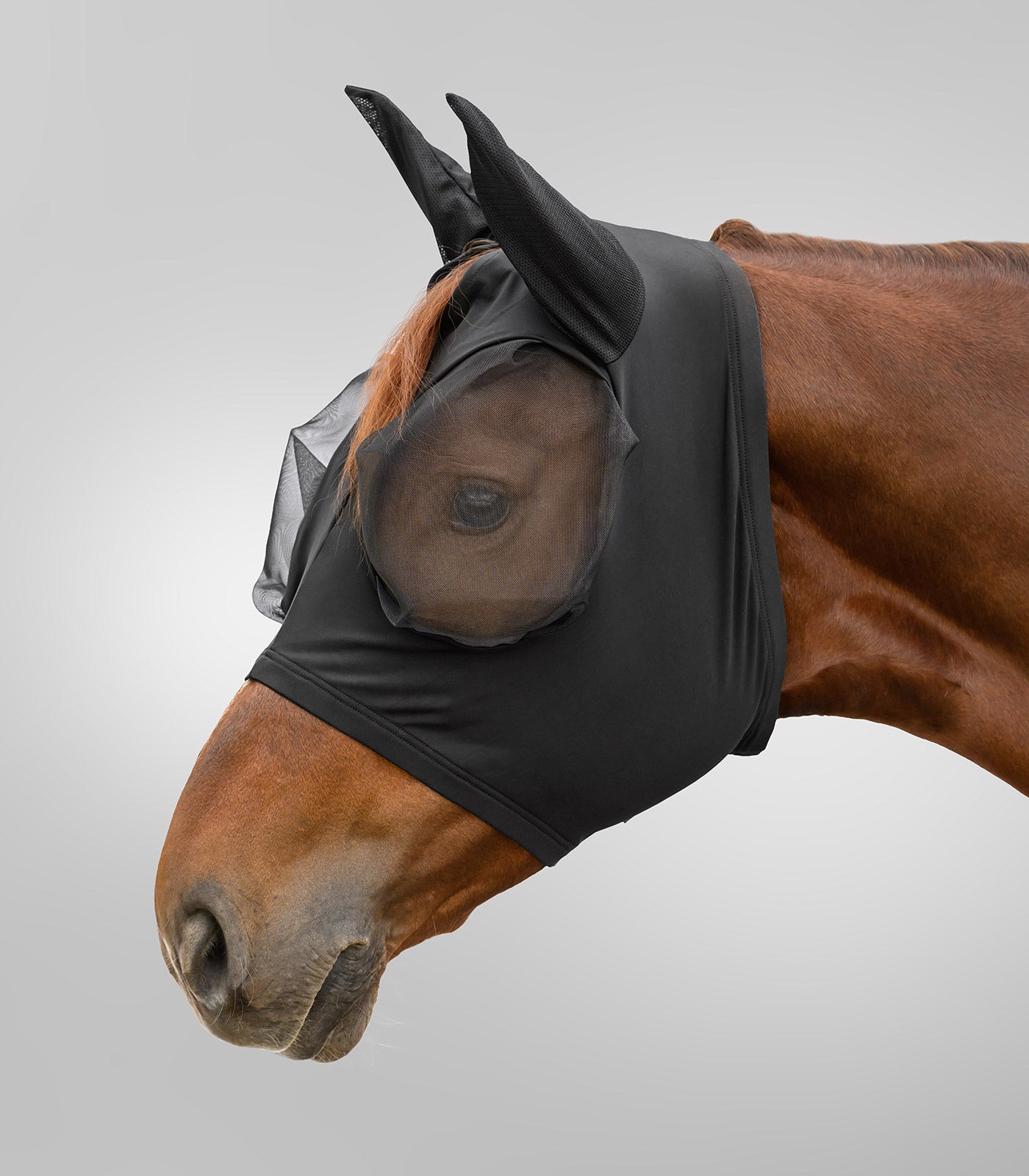 Betrouwbare bescherming tegen vervelende vliegen. Dankzij het elastische materiaal is het Flex vliegenmasker gemakkelijk op te zetten en past het zich goed aan de kop van het paard aan – zonder rits. Het nauwsluitende ontwerp voorkomt dat insecten naar binnen komen, terwijl de ruime oogopening zorgt voor veel comfort.