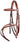 Bride mexicaine avec rembourrage doux sur le frontal, la muserolle et la têtière, et surpiqûres contrastées. Elle est également dotée d'une douce protection en laine sous le centre de la muserolle. Rênes en sangle incluses.