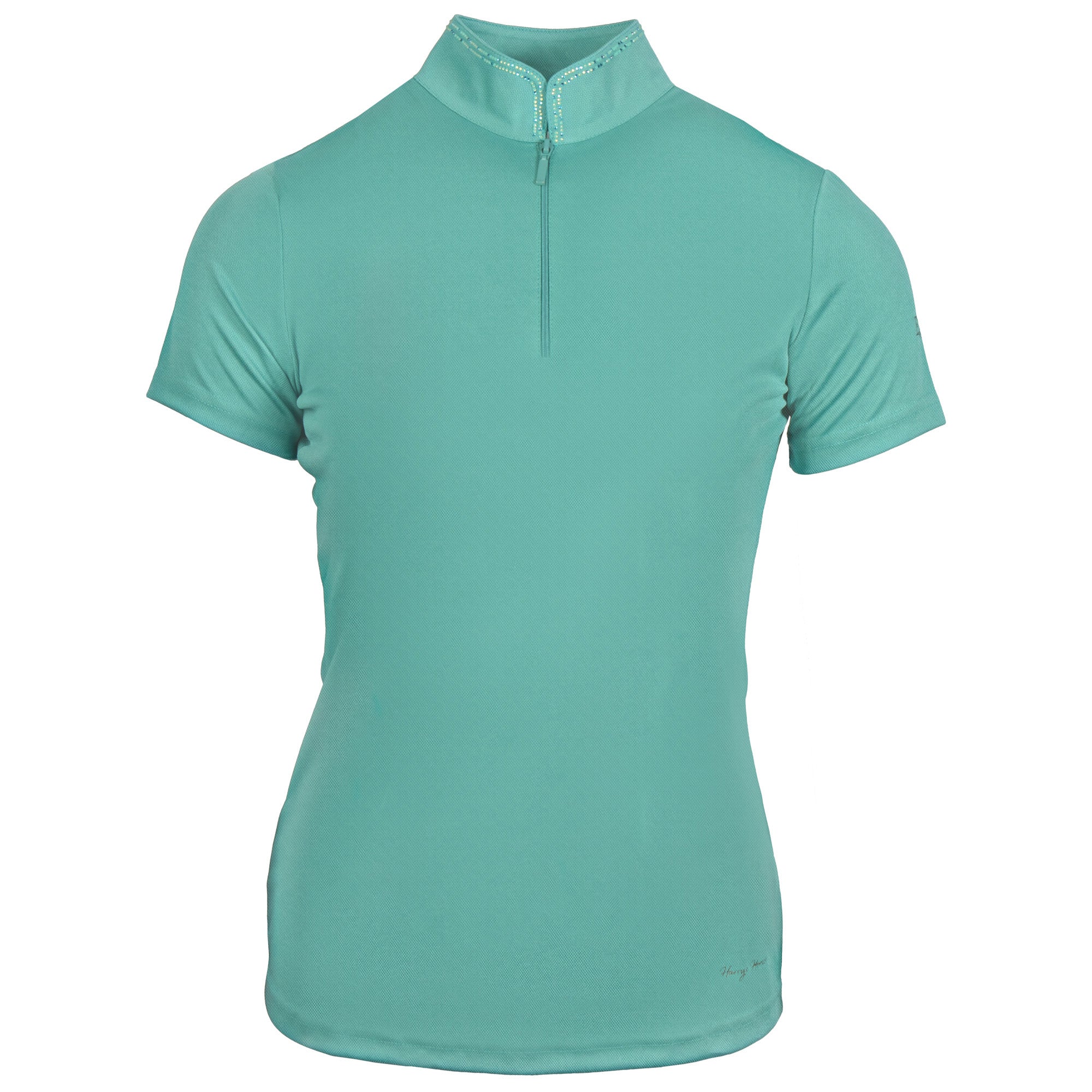 Dit shirt met korte mouw is voorzien van een opstaande kraag, stijlvol afgewerkt met fonkelende kristallen en een korte ritssluiting. Het subtiele EQS-logo op de linkermouw voegt een verfijnd merksignatuur toe. Dankzij de katoen/elastanmix voelt het shirt zacht aan op de huid en biedt het voldoende stretch voor een comfortabele pasvorm.